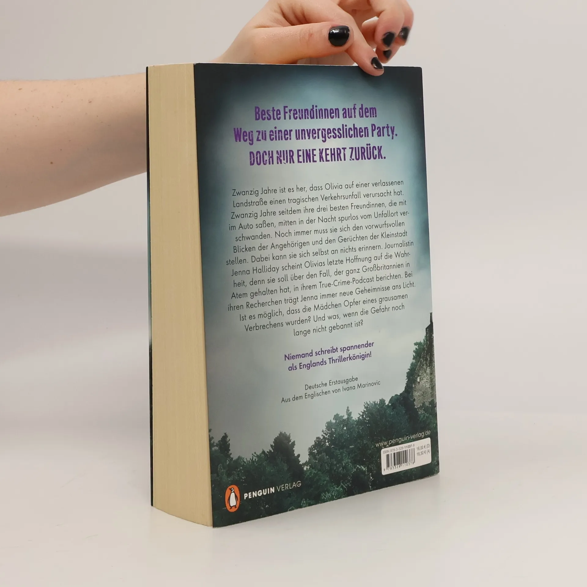Beste Freundinnen auf dem Weg zu einer unvergesslichen Party. Doch nur eine kehrt zurück. Zwanzig Jahre ist es her, dass Olivia auf einer verlassenen Landstraße einen tragischen Verkehrsunfall verursacht hat. Zwanzig Jahre seitdem ihre drei besten Freundinnen, die mit im Auto saßen, mitten in der Nacht spurlos vom Unfallort verschwanden. Noch immer muss sie sich den vorwurfsvollen Blicken der Angehörigen und den Gerüchten der Kleinstadt stellen. Dabei kann sie sich selbst an nichts erinnern. Journalistin Jenna Halliday scheint Olivias letzte Hoffnung auf die Wahrheit, denn sie soll über den Fall, der ganz Großbritannien in Atem gehalten hat, in ihrem True-Crime-Podcast berichten. Bei ihren Recherchen trägt Jenna immer neue Geheimnisse ans Licht. Ist es möglich, dass die verschwunden Mädchen Opfer eines grausamen Verbrechens wurden? Und was, wenn die Gefahr noch lange nicht gebannt ist? Nach dem SPIEGEL-Nr.-1-Bestseller »Liebste Tochter« kommt jetzt der neue atmosphärische Thriller von Claire Douglas. Unvergleichlich spannend! Überraschend bis zur letzten Seite.
