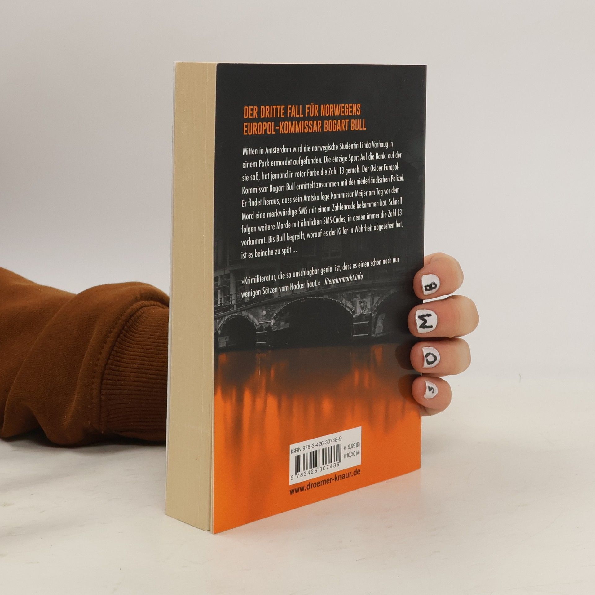 Hochspannung für alle Fans skandinavischer Kriminalromane: Sein dritter Fall führt den norwegischen Europol-Ermittler Bogart Bull nach Amsterdam – und in die dunkelsten Abgründe seiner eigenen Vergangenheit. Auf einer Parkbank in Amsterdam findet man die Leiche einer norwegischen Studentin, regelrecht hingerichtet mit einer Bolzenschusspistole. Trotz des öffentlichen Tatorts gibt es keine Zeugen, die einzige Spur ist die mit roter Farbe auf die Parkbank gemalte Zahl 13 – und eine SMS mit einem kryptischen Code, die kurz vor dem Mord an den holländischen Kommissar Meijer geschickt wurde. Weil die Amsterdamer Polizei im Dunkeln tappt, wird Europol-Ermittler Bogart Bull aus Norwegen auf den Fall angesetzt. Doch noch bevor Bull sich mit allen Umständen des Mordes vertraut gemacht hat, erhält Meijer eine weitere SMS. Kurz darauf findet man einen Bordellkönig tot in seinem Swimmingpool, in Gesellschaft eines hochgiftigen Fisches. Wieder wurde der Tatort mit einer roten 13 markiert. Auch den dritten Mord kann Bull nicht verhindern, diesmal ist das Opfer ein holländischer Rechtspopulist. Fieberhaft versucht Bogart Bull, eine Verbindung zwischen den Opfern herzustellen. Bis er begreift, auf wen es der Killer in Wahrheit abgesehen hat, ist es beinahe zu spät …