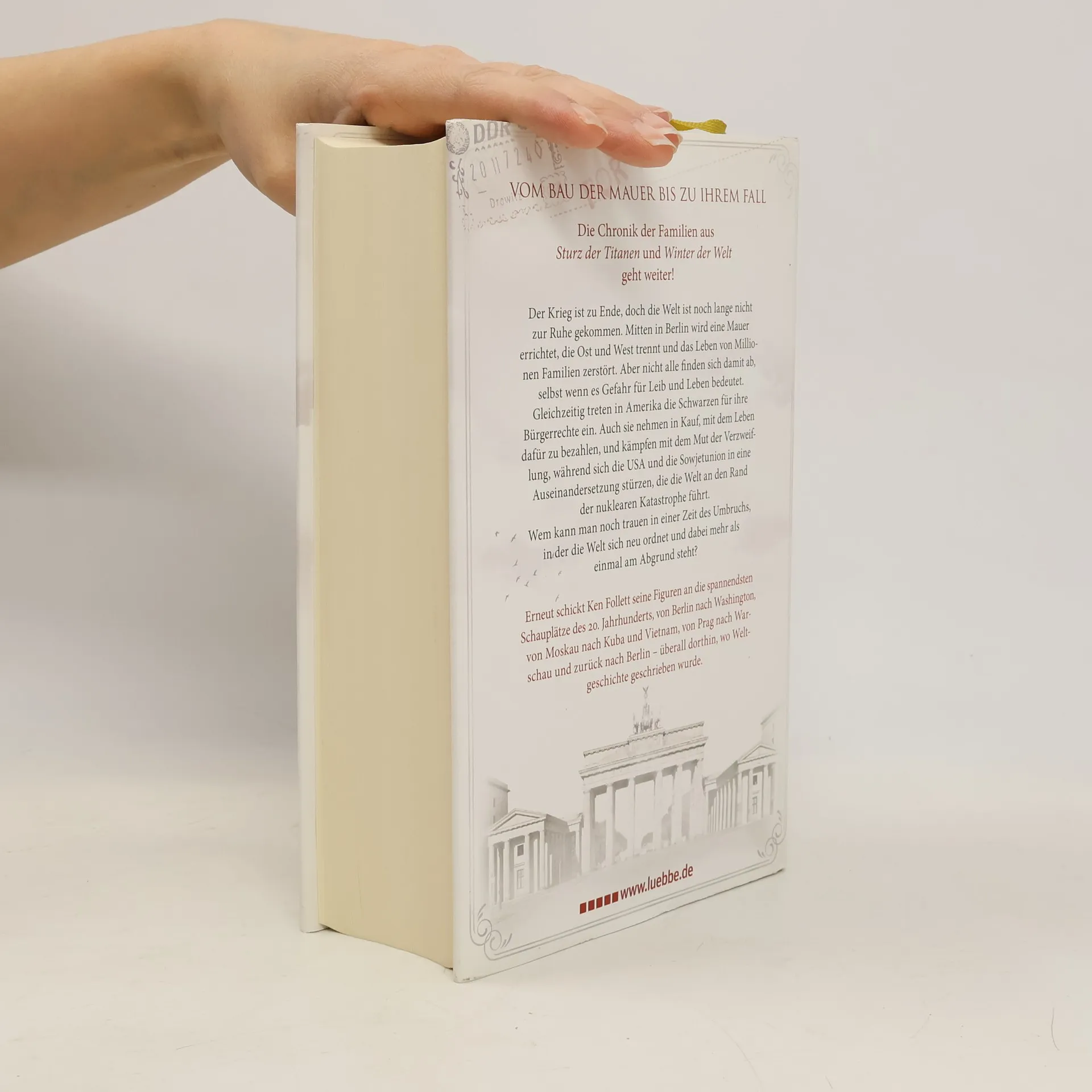 VOM BAU DER MAUER BIS ZU IHREM FALL erzählt die epische Familiensaga des Autors der Bestseller. In Ostberlin scheint das Leben von Rebecca Hoffmann in Ordnung, bis sie entdeckt, dass ihr Mann sie im Auftrag der Stasi bespitzelt. Ihr konfrontatives Handeln führt zu einem verhängnisvollen Fehler, der das Schicksal ihrer Familie für immer verändert. In den USA kämpft George Jakes, ein Vertrauter von Justizminister Robert Kennedy, hautnah gegen Rassismus und Ungerechtigkeit und erlebt die Herausforderungen, die mit seiner Hautfarbe verbunden sind. Cameron Dewar, ein Republikaner und CIA-Agent, navigiert durch eine Welt voller Täuschung und Intrigen, während Dimka Dworkin, Berater von Nikita Chruschtschow, in den Konflikt zwischen Sowjetunion und USA verwickelt wird, der die Welt an den Rand des Atomkriegs führt. Seine Schwester Tanja, Journalistin, verfolgt die Ereignisse an den Brennpunkten von Moskau über Kuba bis nach Prag und Warschau. Der Roman verknüpft die Schicksale von Menschen aus Ost und West vor dem Hintergrund der politischen Umwälzungen von den frühen Sechzigern bis zum Ende der Achtzigerjahre und bildet den packenden Abschluss von Ken Folletts Jahrhundert-Trilogie.