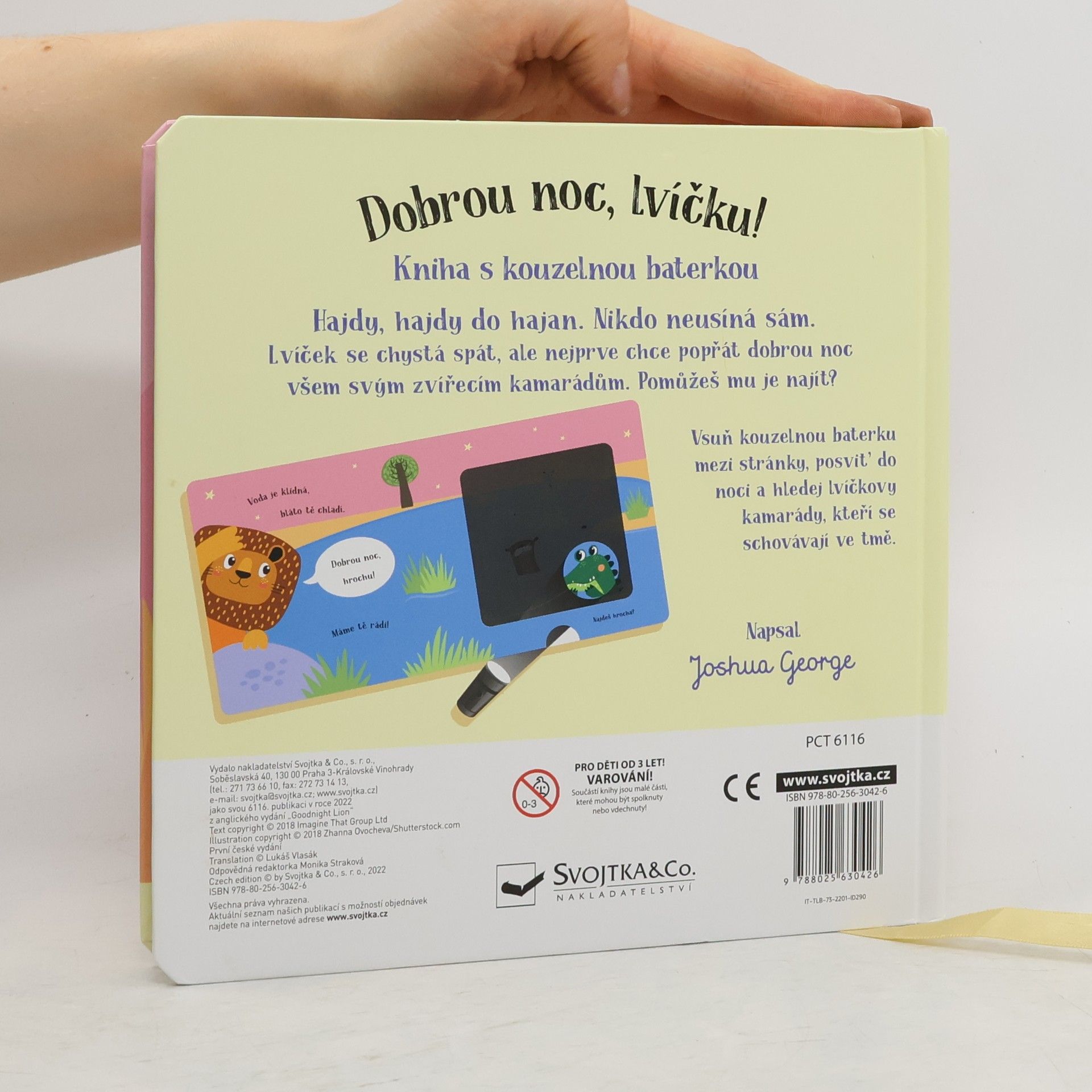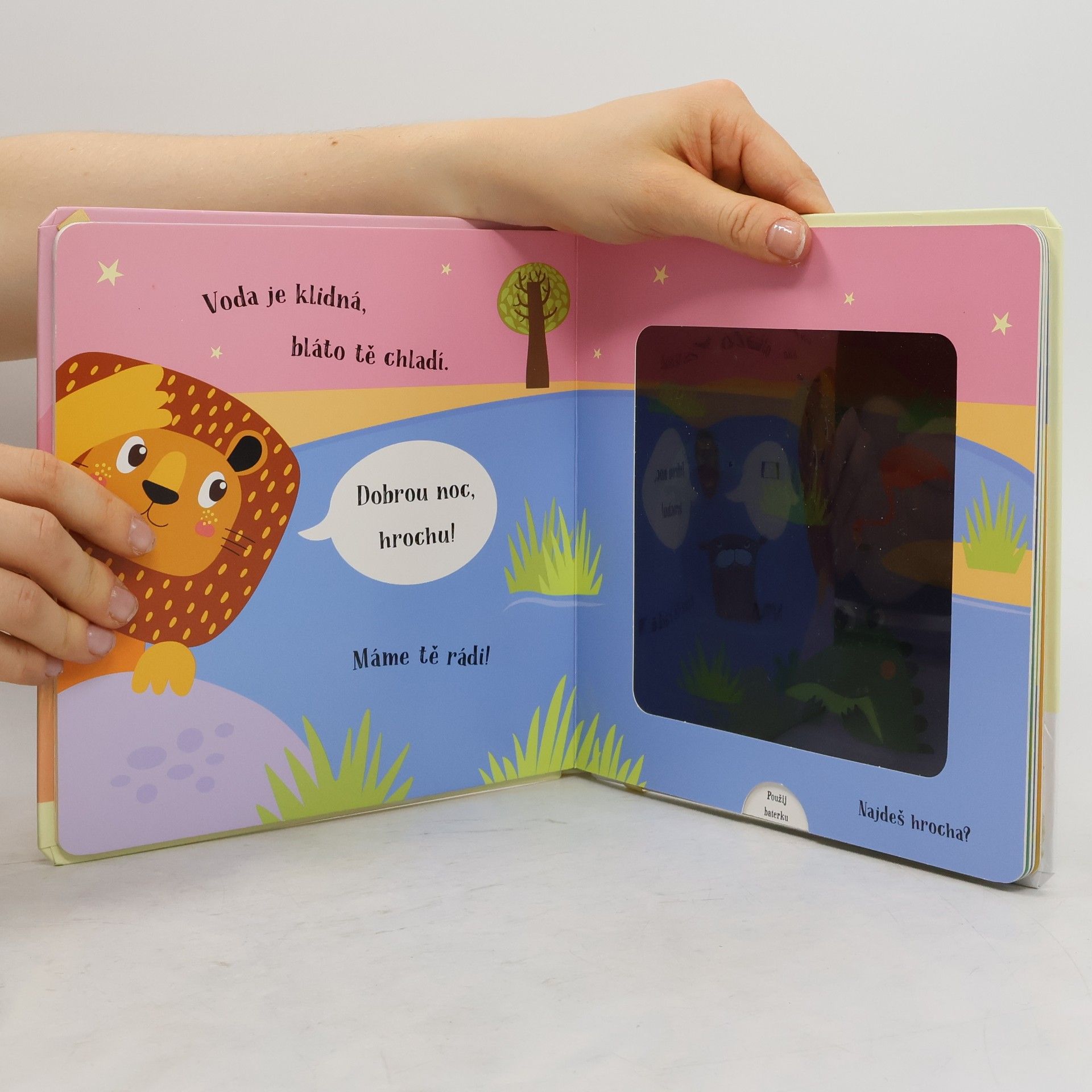 Kouzelné čtení na dobrou noc pro děti. Malý lev už se chystá spát, ale nejprve musí dát dobrou noc všem svým zvířecím kamarádům. Pomůžeš mu je najít? Vsuň kouzelnou baterku mezi stránky a zjisti, kdo se ukrývá v každé ilustraci, zobrazující noc. Text ve verších učí děti vnímat přirozený rytmus řeči. Chytře vyrobená okénka umožňují dětem hledat schovaná zvířátka pomocí přiložené kartonové pomůcky ve tvaru svítilny. Nabídněte svému dítěti před spaním nějakou zklidňující aktivitu. Tato knížka je pro to přímo stvořená.