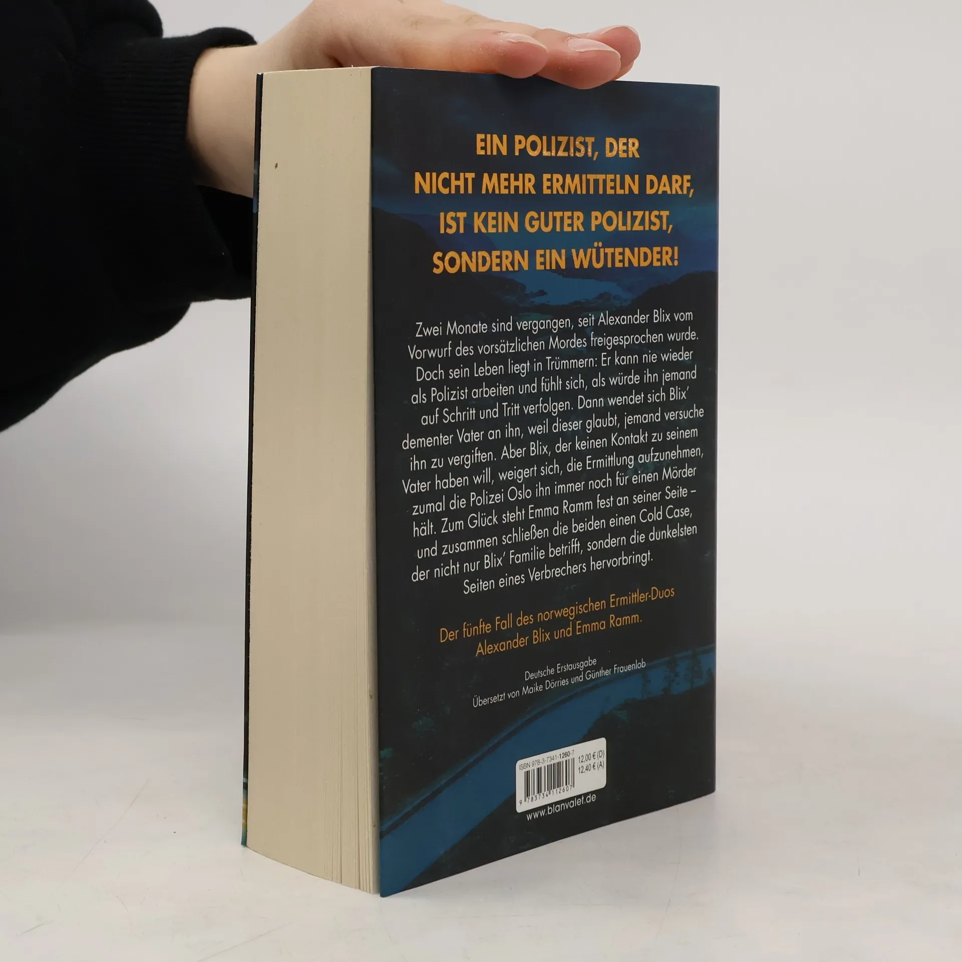 Ein Polizist, der nicht mehr ermitteln darf, ist kein guter Polizist, sondern ein wütender! Band 5 der SPIEGEL-Bestseller-Reihe aus Norwegen. Zwei Monate sind vergangen, seit Alexander Blix vom Vorwurf des vorsätzlichen Mordes freigesprochen wurde. Doch sein Leben liegt in Trümmern: Er kann nie wieder als Polizist arbeiten und fühlt sich, als würde ihn jemand auf Schritt und Tritt verfolgen. Dann wendet sich Blix' dementer Vater an ihn, weil dieser glaubt, jemand versuche, ihn zu vergiften. Aber Blix, der keinen Kontakt zu seinem Vater haben will, weigert sich, die Ermittlung aufzunehmen, zumal die Polizei Oslo ihn immer noch für einen Mörder hält. Zum Glück steht Emma Ramm fest an seiner Seite – und zusammen schließen die beiden einen Cold Case, der nicht nur Blix' Familie betrifft, sondern die dunkelsten Seiten eines Verbrechers hervorbringt. Alle Fälle der norwegischen Platz-1-Bestseller-Serie: Blutzahl Blutnebel Bluttat Blutnacht Blutstunde