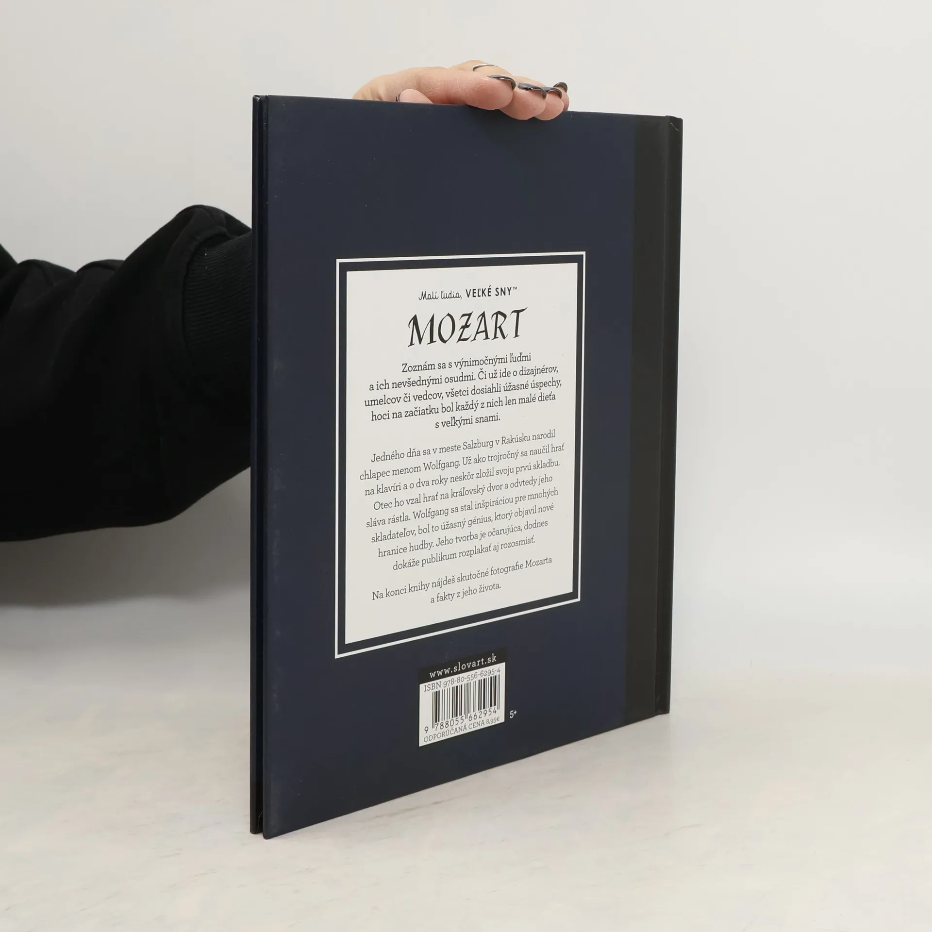 Zoznám sa s výnimočnými ľuďmi a ich nevšednými osudmi. Či už ide o dizajnérov, umelcov či vedcov, všetci dosiahli úžasné úspechy, hoci na začiatku bol každý z nich len malé dieťa s veľkými snami. Jedného dňa sa v meste Salzburg v Rakúsku narodil chlapec menom Wolfgang. Už ako trojročný sa naučil hrať na klávesy a o dva roky neskôr zložil svoju prvú skladbu. Otec ho vzal hrať na kráľovský dvor a odvtedy jeho sláva rástla. Wolfgang sa stal inšpiráciou pre mnohých skladateľov, bol to úžasný génius, ktorý objavoval nové hranice hudby. Jeho tvorba bola očarujúca, dokázala publikum rozplakať aj rozosmiať. Na konci knihy nájdeš skutočné fotografie Wolfganga a fakty z jeho života.