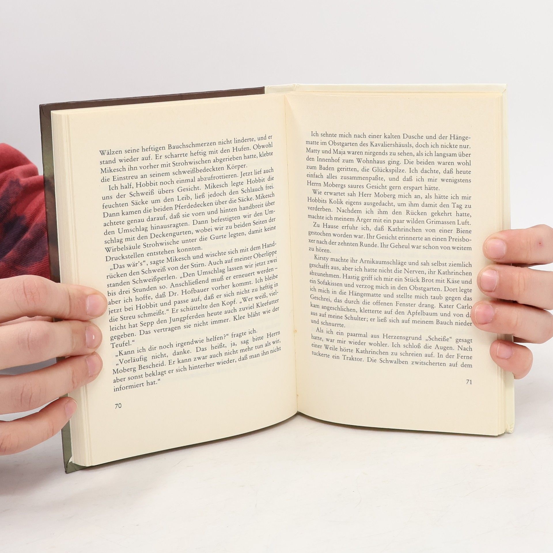 Ich gehe barfuß über das vom Tau noch feuchte Gras. Ruhig grasen die Stuten mit ihren Fohlen auf der Koppel. Eine Grille zirpt im Apfelbaum, der Hund Herr Alois rennt mit fliegenden Ohren auf mich zu. Nach den Ängsten und Sorgen der letzten Tage bin ich jetzt ruhig und zuversichtlich. Jörn wird wieder ganz gesund werden, und ich weiß: Wir werden uns nicht mehr trennen. Jörn und ich gehören zusammen …
