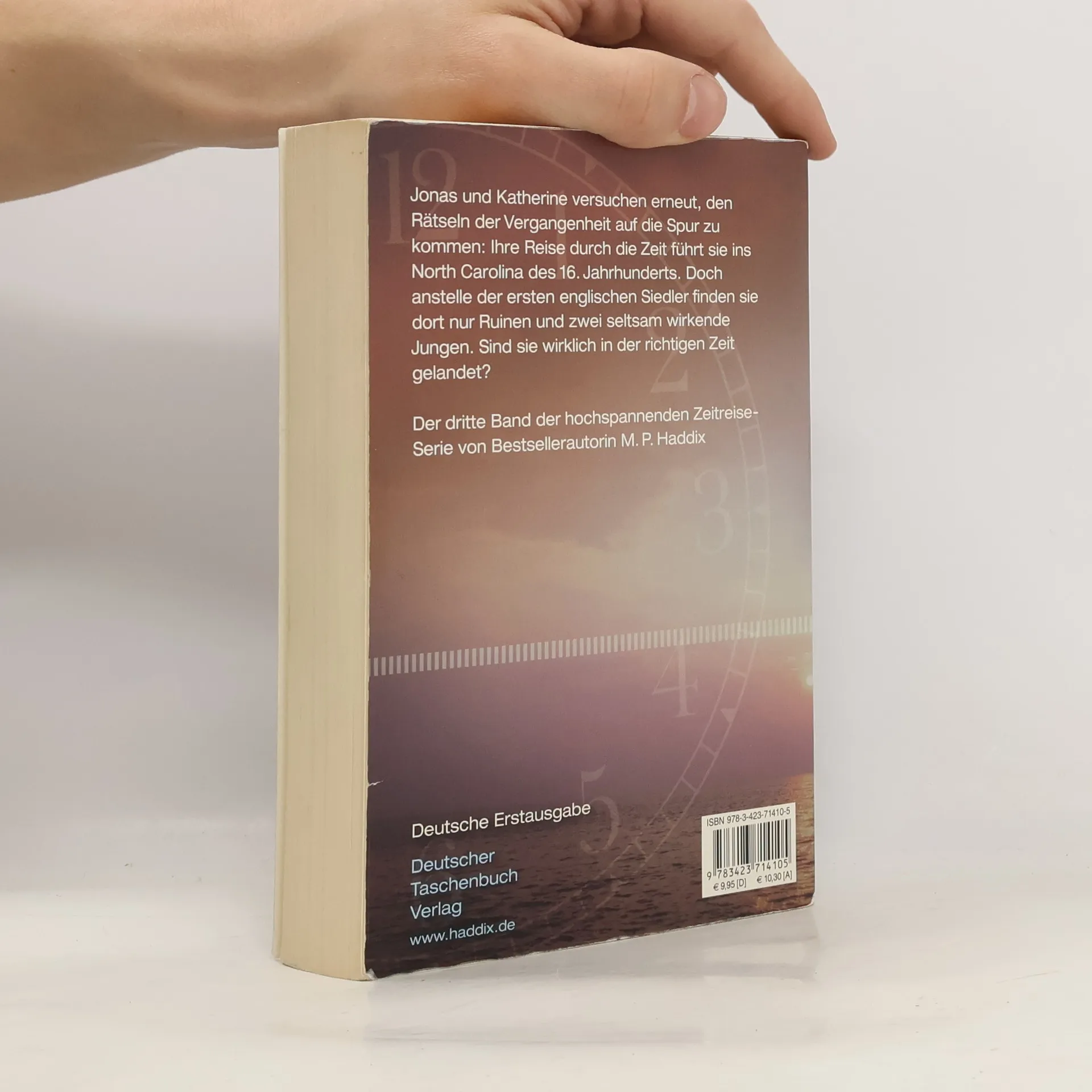 Andrea, Jonas und Katherine landen auf der Suche nach Andreas Herkunft im North Carolina des 16. Jahrhunderts. Dort wurde sie einst als Virginia Dare geboren: das erste Kind englischer Siedler. Doch seltsame Entdeckungen legen nahe, dass jemand den Zeitreise-Definator umprogrammiert hat, um die Geschichte zu verändern. Die drohende Zeitkatastrophe muss verhindert werden!Band 3 der Reihe "Im Sog der Zeiten" Margaret Peterson Haddix, geboren 1964, wuchs auf einer Farm in der Nähe von Washington Courthouse, Ohio auf, wo ihre Familie schon seit dem frühen 19. Jahrhundert lebt.Nach ihrem Studium an der Miami University of Ohio arbeitete sie in verschiedenen Bereichen: als Journalistin bei einer Tageszeitung in Indianapolis, Dozentin an einem College und als freie Journalistin in Danville, Illinois.Heute schreibt sie sehr erfolgreich Kinder- und Jugendbücher und lebt mit ihrem Mann und ihren zwei Kindern in Columbus, Ohio. Für ihr literarisches Werk wurde sie in den USA mit zahlreichen Preisen ausgezeichnet.