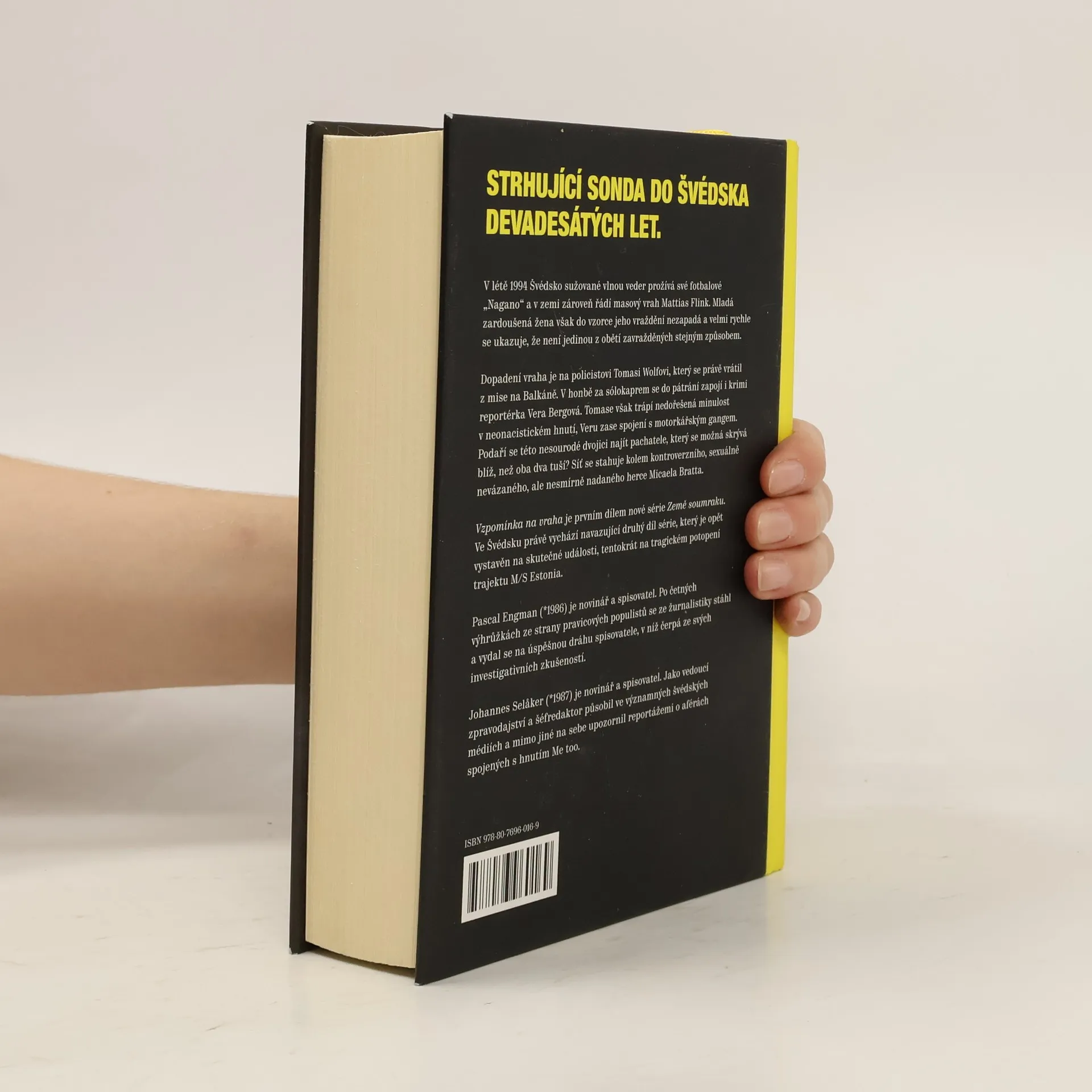 Miláček davů, nebo nelítostný vrah? Strhující sonda do Švédska devadesátých let. V létě 1994 Švédsko sužované vlnou veder prožívá své fotbalové „Nagano“ a v zemi zároveň řádí masový vrah Mattias Flink. Mladá zardoušená žena však do vzorce jeho vraždění nezapadá, a velmi rychle se ukazuje, že není jedinou z obětí zavražděných stejným způsobem. Dopadení vraha je na policistovi Tomasi Wolfovi, který se právě vrátil z mise na Balkáně. V honbě za sólokaprem se do pátrání zapojí i krimi reportérka Vera Bergová. Tomase však trápí nedořešená minulost v neonacistickém hnutí, Veru zase spojení s motorkářským gangem. Podaří se této nesourodé dvojici najít pachatele, který se možná skrývá blíž, než oba dva tuší? Síť se stahuje kolem kontroverzního, sexuálně nevázaného, ale nesmírně nadaného herce Micaela Bratta. Vzpomínka na vraha je prvním dílem nové série Země soumraku.