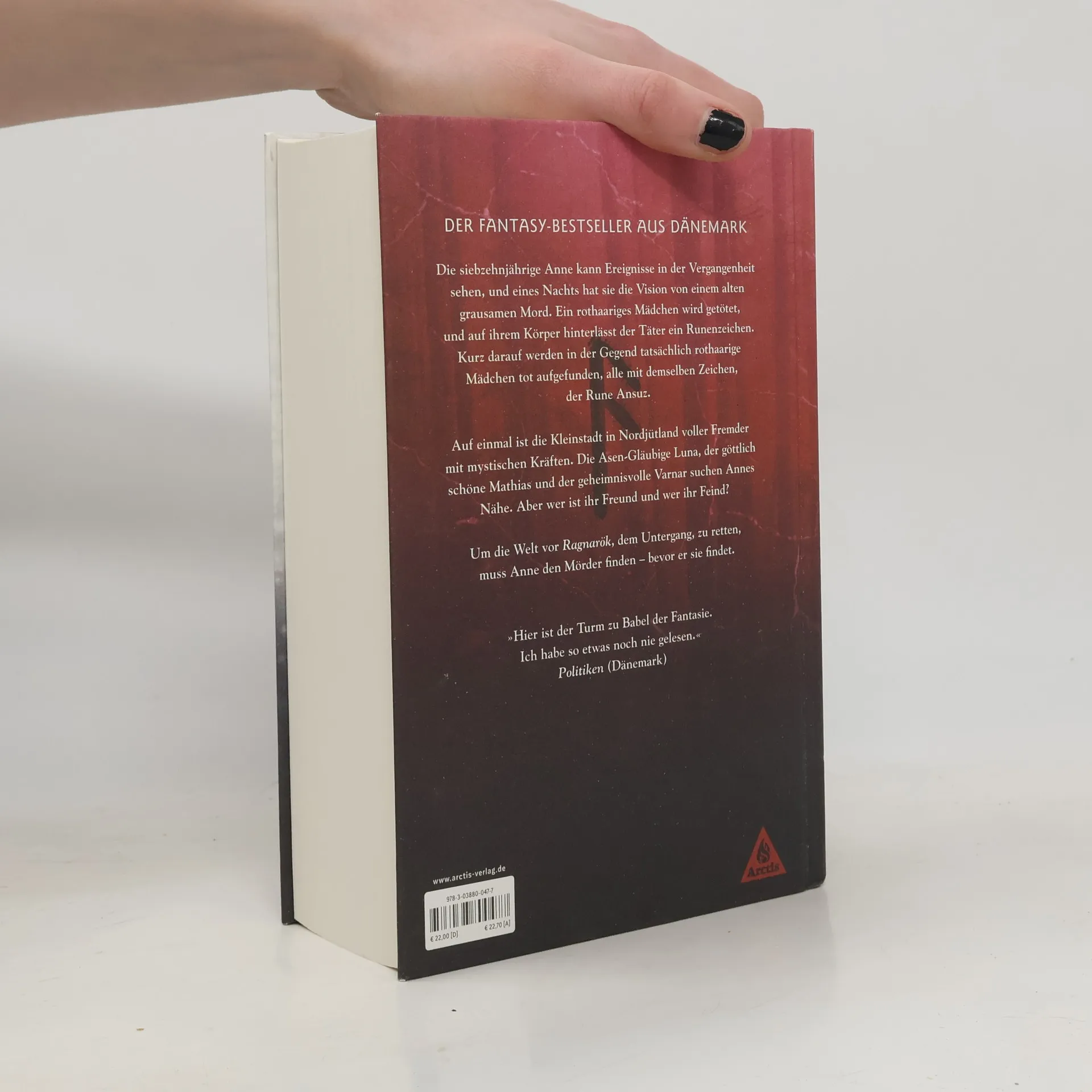 Ausgezeichnet mit dem renommierten Jugendliteraturpreis BUXTEHUDER BULLE 2022! Der nordische Fantasy-Bestseller aus Dänemark: Die siebzehnjährige Anne kann Ereignisse in der Vergangenheit sehen, und eines Nachts hat sie die Vision von einem alten grausamen Mord. Ein rothaariges Mädchen wird getötet, und auf ihrem Körper hinterlässt der Täter ein Runenzeichen. Kurz darauf werden in der Gegend tatsächlich rothaarige Mädchen tot aufgefunden, alle mit demselben Zeichen, der Rune Ansuz. Auf einmal ist die Kleinstadt in Nordjütland voller Fremder mit mystischen Kräften. Die Asen-Gläubige Luna, der göttlich schöne Mathias und der geheimnisvolle Varnar suchen Annes Nähe. Aber wer ist ihr Freund und wer ihr Feind? Um die Welt vor Ragnarök, dem Untergang, zu retten, muss Anne den Mörder finden – bevor er sie findet.