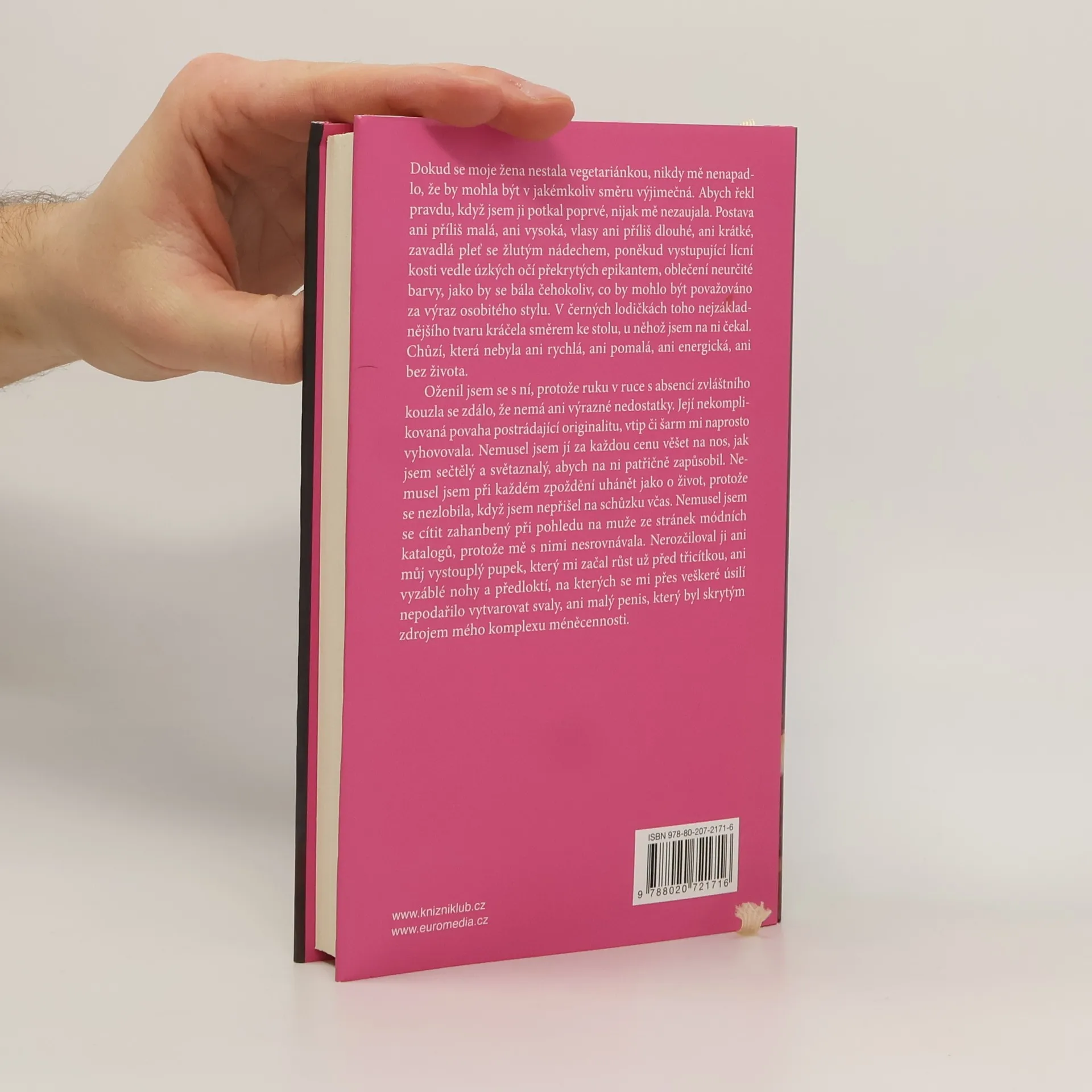 Ten pocit syrového masa rozžvýkaného mezi mými zuby. Jonghje se jednoho dne probudí z krvavé noční můry a její život se začne dramaticky měnit. Ze všeho nejdřív přestane jíst maso. Ovšem v dravé patriarchální společnosti její náhlé vegetariánství a zejména neoblomný postoj, s jakým se vzepře svému muži i rodině, představuje pro její okolí ohromný šok. Jihokorejská autorka získala za román roku 2016 ocenění Man Booker International.