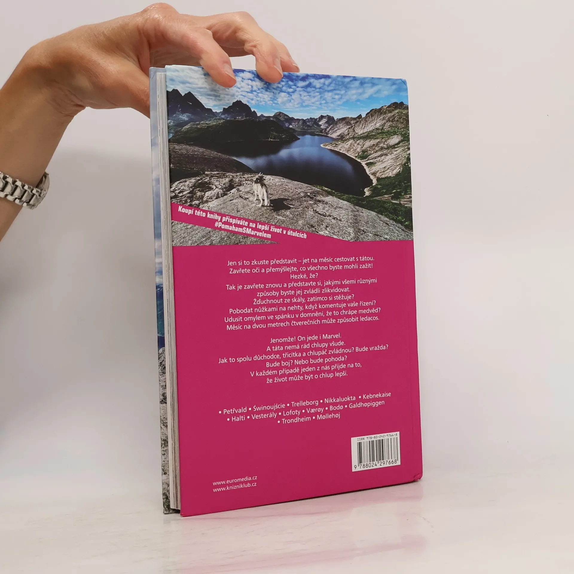 Jen si to zkuste představit – jet na měsíc cestovat s tátou. Zavřete oči a přemýšlejte, co všechno byste mohli zažít! Hezké, že? Tak je zavřete znovu a představte si, jakými všemi různými způsoby byste jej zvládli zlikvidovat. Žďuchnout ze skály, zatímco si stěžuje? Pobodat nůžkami na nehty, když komentuje vaše řízení? Udusit omylem ve spánku v domnění, že to chrápe medvěd? Měsíc na dvou metrech čtverečních může způsobit ledacos. Jenomže! On jede i Marvel. A táta nemá rád chlupy všude. Jak to spolu důchodce, třicítka a chlupáč zvládnou? Bude vražda? Bude boj? Nebo bude pohoda? V každém případě jeden z nás přijde na to, že život může být o chlup lepší. Populární cestovatelka s bucketlistem a její husky Marvel tentokrát cestují i s Lucčiným tátou po Skandinávii!