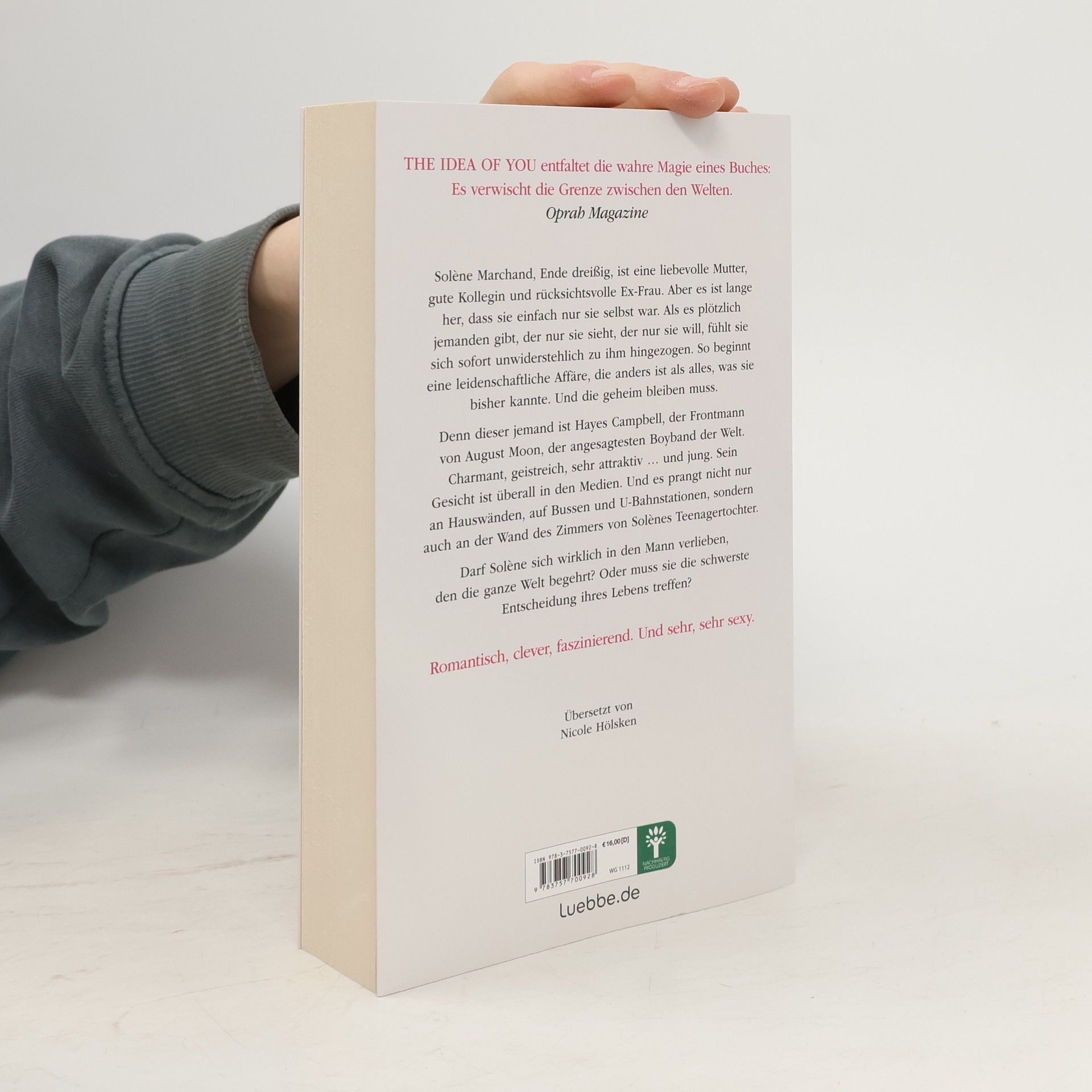 The Idea of you entfaltet die wahre Magie eines Buches: Es verwischt die Grenze zwischen den Welten. Oprah Magazine Solène Marchand, Ende dreißig, ist eine liebevolle Mutter, gute Kollegin und rücksichtsvolle Ex-Frau. Aber es ist lange her, dass sie einfach nur sie selbst war. Als es plötzlich jemanden gibt, der nur sie sieht, der nur sie will, fühlt sie sich sofort unwiderstehlich zu ihm hingezogen. So beginnt eine leidenschaftliche Affäre, die anders ist als alles, was sie bisher kannte. Und die geheim bleiben muss. Denn dieser jemand ist Hayes Campbell, der Frontmann von August Moon, der angesagtesten Boyband der Welt. Charmant, geistreich, sehr attraktiv ... und jung. Sein Gesicht ist überall in den Medien. Und es prangt nicht nur an Hauswänden, auf Bussen und U-Bahnstationen, sondern auch an der Wand des Zimmers von Solènes Teenagertochter. Darf Solène sich wirklich in den Mann verlieben, den die ganze Welt begehrt? Oder muss sie die schwerste Entscheidung ihres Lebens treffen? Romantisch, clever, faszinierend. Und sehr, sehr sexy.