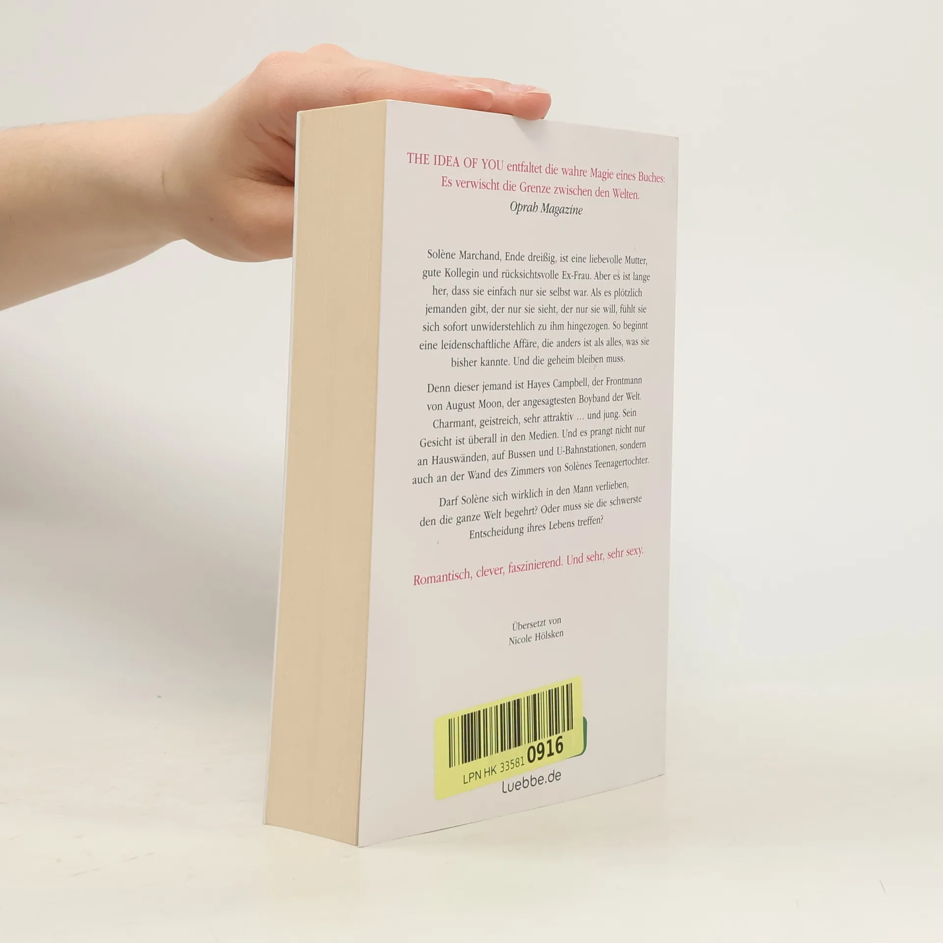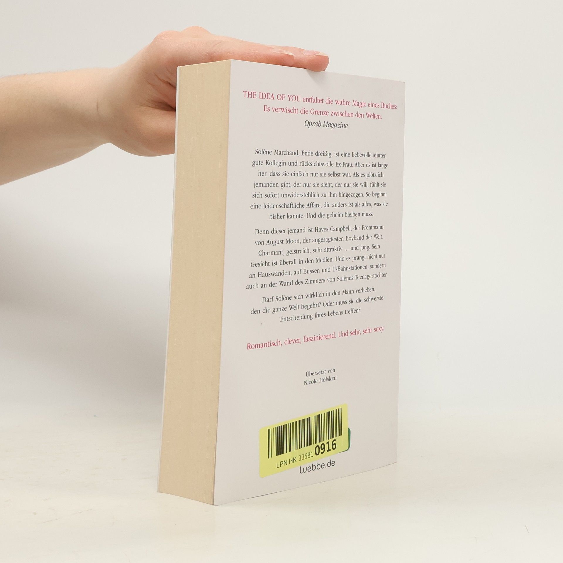 The Idea of you entfaltet die wahre Magie eines Buches: Es verwischt die Grenze zwischen den Welten. Oprah Magazine Solène Marchand, Ende dreißig, ist eine liebevolle Mutter, gute Kollegin und rücksichtsvolle Ex-Frau. Aber es ist lange her, dass sie einfach nur sie selbst war. Als es plötzlich jemanden gibt, der nur sie sieht, der nur sie will, fühlt sie sich sofort unwiderstehlich zu ihm hingezogen. So beginnt eine leidenschaftliche Affäre, die anders ist als alles, was sie bisher kannte. Und die geheim bleiben muss. Denn dieser jemand ist Hayes Campbell, der Frontmann von August Moon, der angesagtesten Boyband der Welt. Charmant, geistreich, sehr attraktiv ... und jung. Sein Gesicht ist überall in den Medien. Und es prangt nicht nur an Hauswänden, auf Bussen und U-Bahnstationen, sondern auch an der Wand des Zimmers von Solènes Teenagertochter. Darf Solène sich wirklich in den Mann verlieben, den die ganze Welt begehrt? Oder muss sie die schwerste Entscheidung ihres Lebens treffen? Romantisch, clever, faszinierend. Und sehr, sehr sexy.