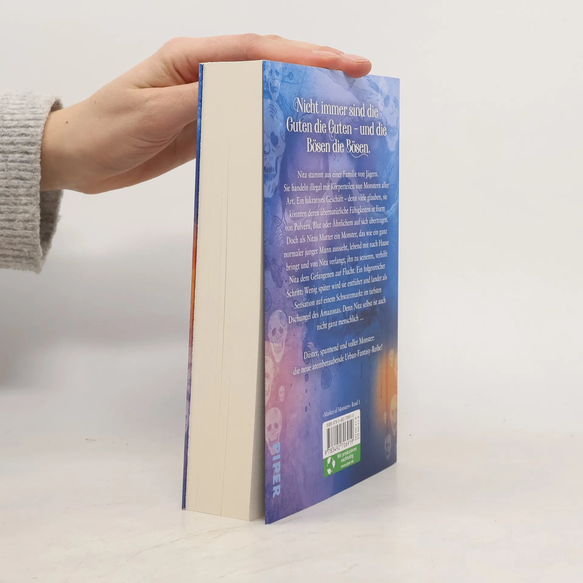 Von der Jägerin zur Gejagten Nita stammt aus einer Familie von Jägern. Sie handeln auf dem Schwarzmarkt mit Trophäen von Monstern aller Art. Ein lukratives Geschäft, denn viele glauben, sie könnten deren übernatürliche Fähigkeiten in Form von Pulvern, Blut oder anderen Körperteilen auf sich übertragen. Doch als Nitas Mutter ein »Monster« lebend mit nach Hause bringt, das wie ein ganz normaler junger Mann aussieht, verhilft Nita ihm zur Flucht. Ein folgenreicher Schritt: Wenig später wird sie entführt und landet als Sensation auf einem Schwarzmarkt, denn Nita selbst ist auch nicht ganz menschlich …