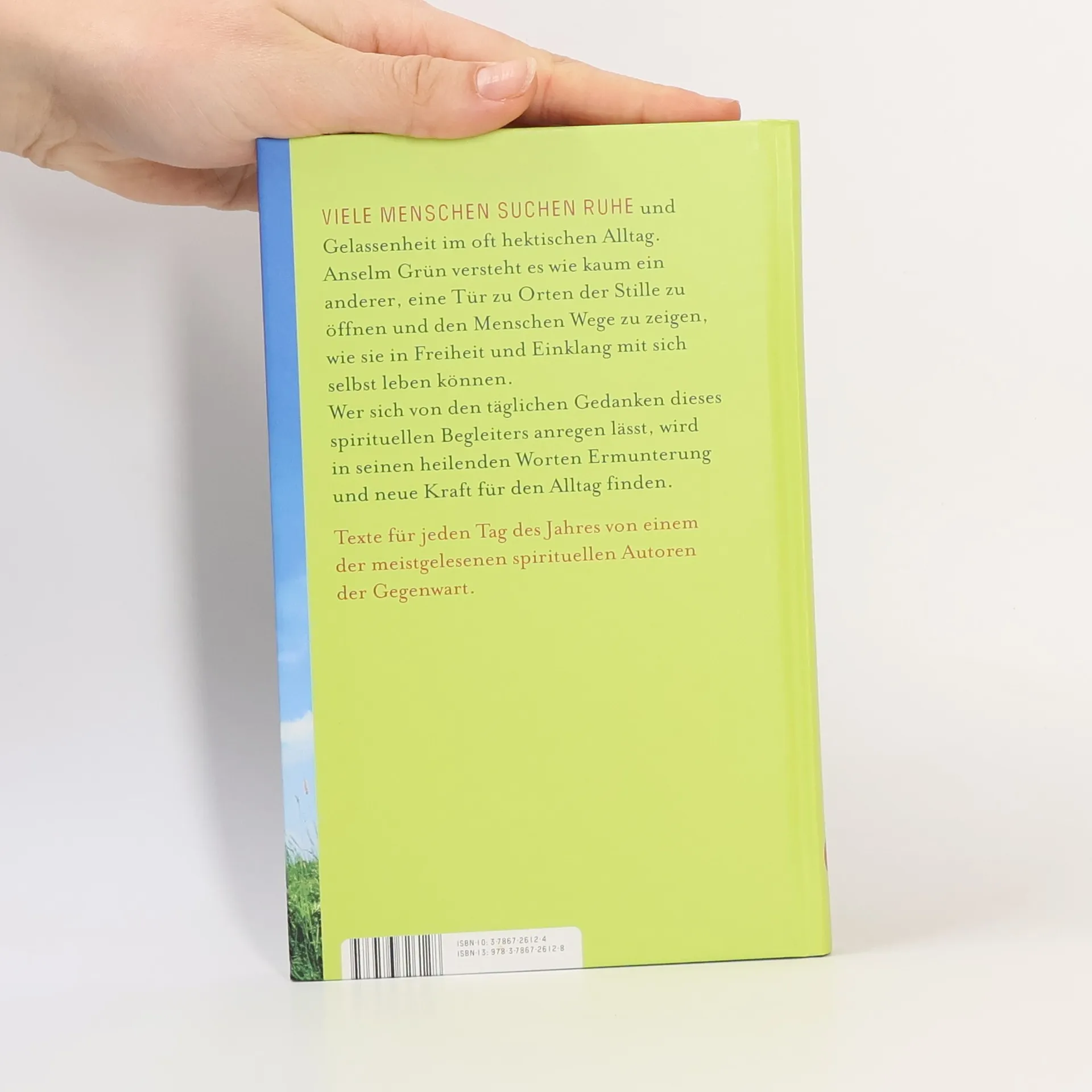 Viele Menschen suchen Ruhe und Gelassenheit im oft hektischen Alltag. Anselm Grün versteht es wie kaum ein anderer, eine Tür zu Orten der Stille zu öffnen und den Menschen Wege zu zeigen, wie sie in Freiheit und Einklang mit sich selbst leben können. Wer sich von den täglichen Gedanken dieses spirituellen Begleiters anregen lässt, wird in seinen heilenden Worten Ermutigung und neue Kraft für den Alltag finden. Texte für jeden Tag des Jahres von einem der meistgelesenen spirituellen Autoren der Gegenwart.