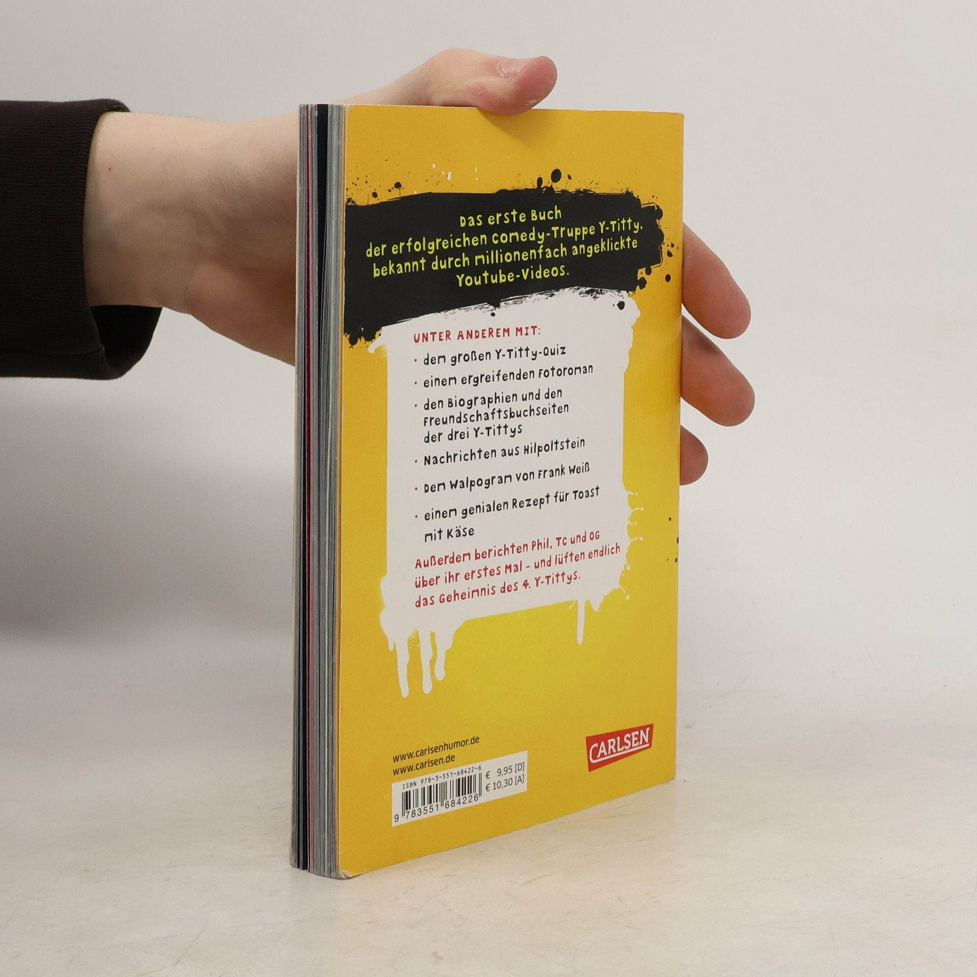 Das erste Buch der erfolgreichen Comedy-Truppe Y-Titty, bekannt durch millionenfach angeklickte Youtube-Videos. Unter anderem mit: • dem großen Y-Titty-Quiz • einem ergreifenden Fotoroman • den Biografien und den Freundschaftsbuchseiten der drei Y-Tittys • Nachrichten aus Hilpoltstein • dem Walpogram von Frank Weiß • einem genialen Rezept für Toast mit Käse Außerdem berichten Phil, TC und OG über ihr erstes Mal – und lüften endlich das Geheimnis des 4. Y-Tittys. Typisch Y-Titty: Ihr erstes Buch wird gleich zur genialen Parodie – zum NICHT-Buch.