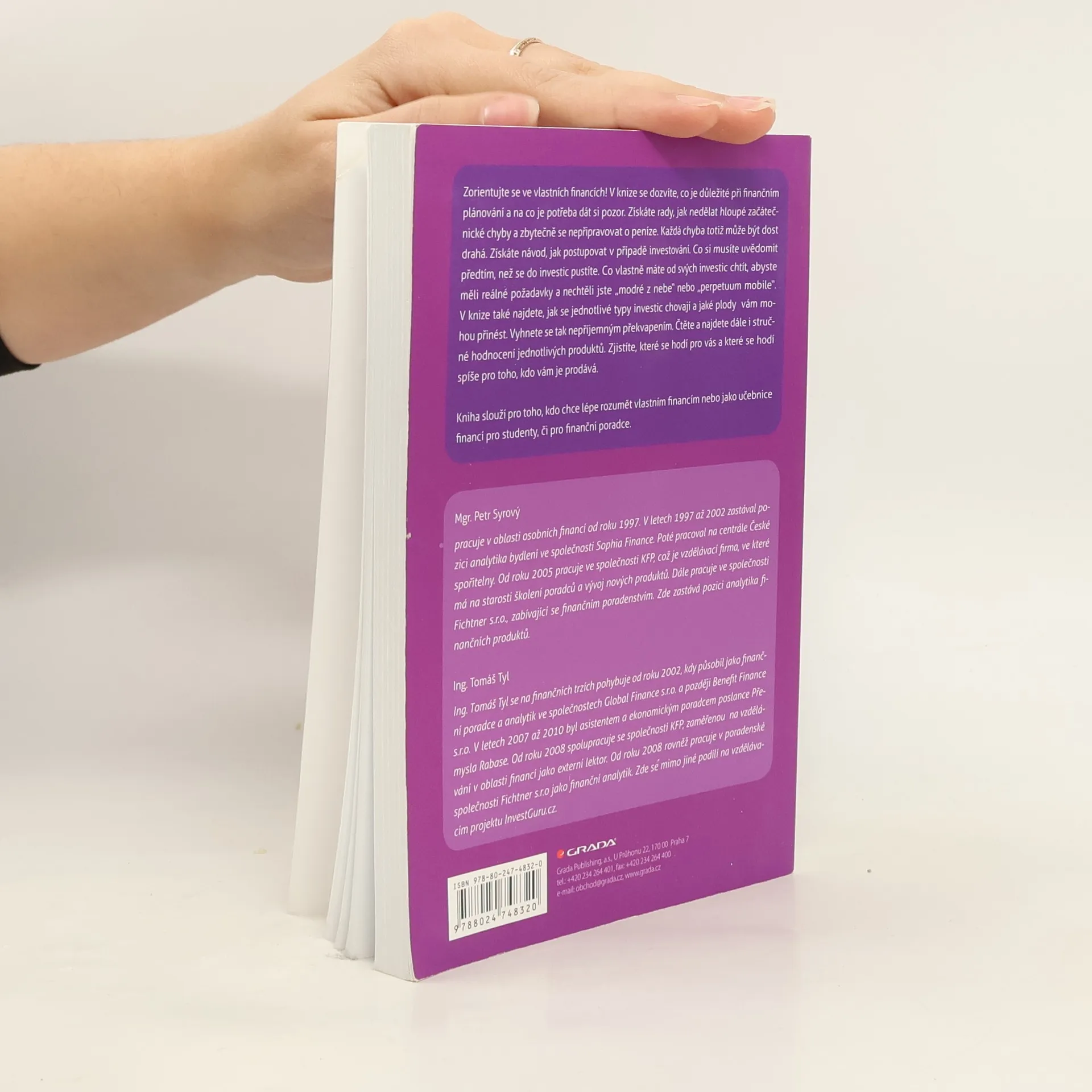 Zorientujte se ve vlastních financích! V knize se dozvíte, co je důležité při finančním plánování a na co je potřeba dát si pozor. Získáte rady, jak nedělat hloupé začátečnické chyby a zbytečně se nepřipravovat o peníze. Každá chyba totiž může být dost drahá. Získáte návod, jak postupovat v případě investování. Co si musíte uvědomit před tím, než se do investic pustíte. Co vlastně máte od svých investic chtít, abyste měli reálné požadavky a nechtěli jste „modré z nebe“ nebo „perpetuum mobile“. V knize také najdete, jak se jednotlivé typy investic chovají a jaké plody vám mohou přinést. Vyhnete se tak nepříjemným překvapením. Čtěte a najdete dále i stručné hodnocení jednotlivých produktů. Zjistíte, které se hodí pro vás a které se hodí spíše pro toho, kdo vám je prodává. Kniha slouží pro toho, kdo chce lépe rozumět vlastním financím nebo jako učebnice financí pro studenty, či pro finanční poradce.