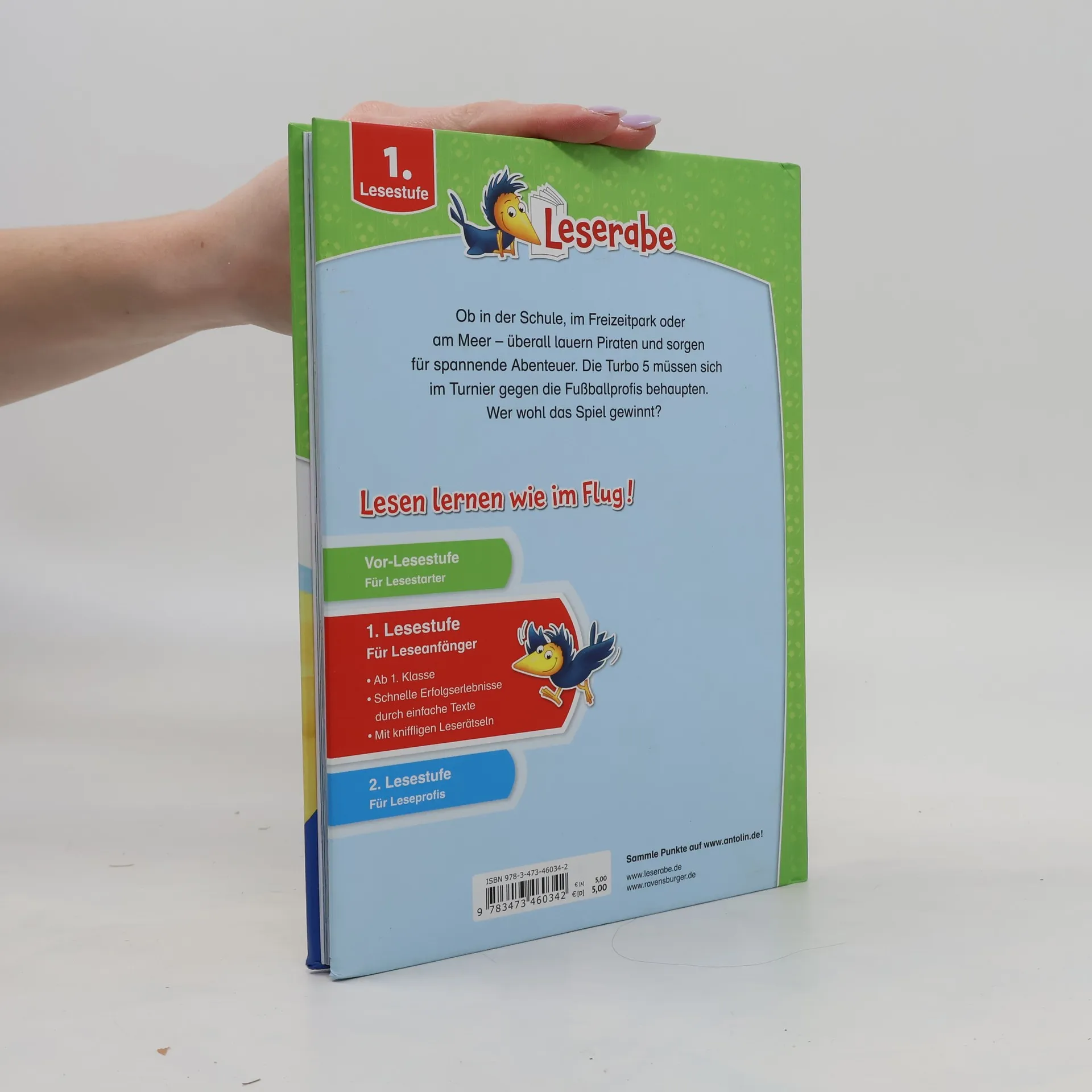 Die Kicker der Bolzplatzbande haben sich mit den Jungs aus dem Fußballverein zum großen Spiel verabredet. Um gegen die Profs eine Chance zu haben, ist Teamgeist gefragt! Ida und Luka begeben sich auf die Suche nach einem Piratenschatzund erleben dabei ein spannendes Abenteuer. Lesen lernen mit dem Ravensburger LeserabenDie 1. Lesestufe spricht Kinder an, die mit dem Leselern-Prozess begonnen haben, und bietet ideale Bücher für Leseanfänger. Kurze Textabschnitte, einfacher Wortschatz sowie die extragroße Fibelschrift erleichtern Kindern das Lesen. Leserätsel für Leseanfänger und spannende Geschichten machen das Lesenlernen zu einem echten Vergnügen.