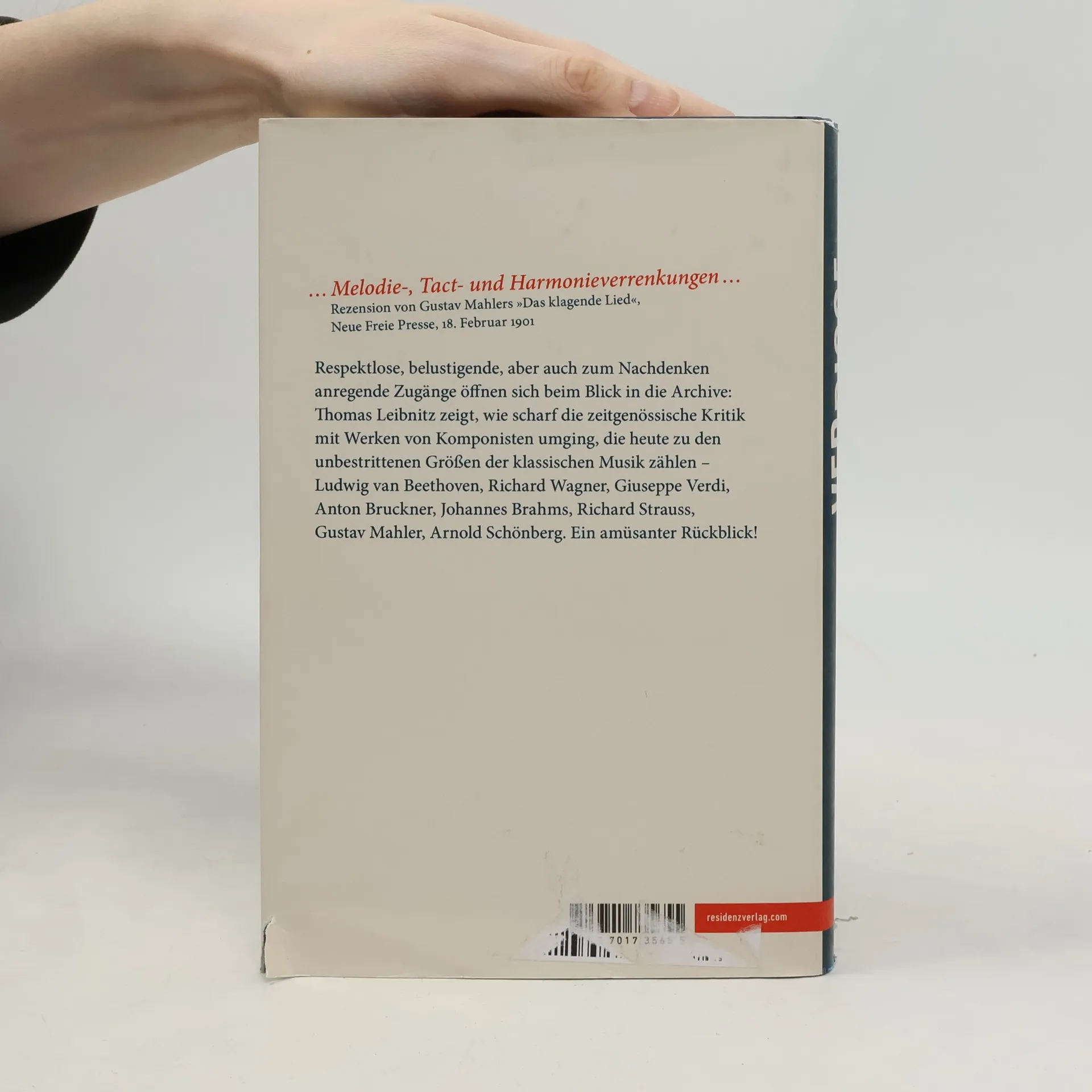 „Bruckner componirt wie ein Betrunkener“: Zu diesem Schluss kommt 1886 ein Musikkritiker nach der Wiener Erstaufführung von Anton Bruckners Siebenter Sinfonie. Stimmen wie diese sind heute nicht mehr zu hören, wenn in den Konzert- und Opernhäusern der Welt die großen Werke des klassischen Repertoires aufgeführt werden – bewundert, verehrt, jeglicher Diskussion enthoben. Respektlose, auch amüsante Zugänge öffnen sich jedoch beim Blick in die Archive: Thomas Leibnitz zeigt, wie scharf die zeitgenössische Kritik mit Werken von Komponisten umging, die heute zu den unbestrittenen Größen der klassischen Musik zählen – Ludwig van Beethoven, Richard Wagner, Giuseppe Verdi, Anton Bruckner, Johannes Brahms, Richard Strauss, Gustav Mahler, Arnold Schönberg.