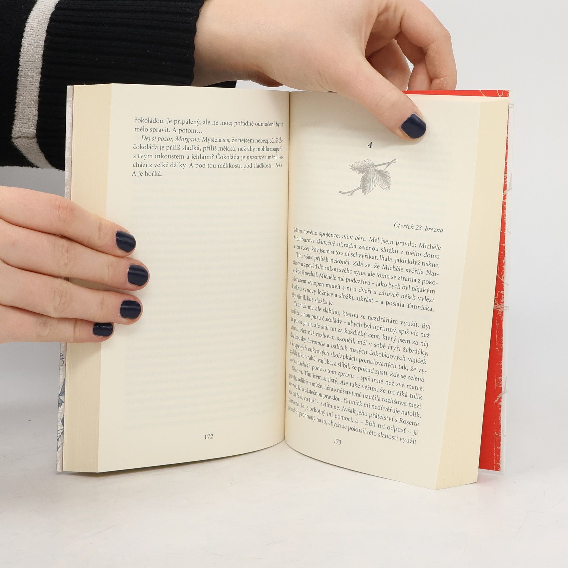 Návrat k postavám z celosvětového bestselleru Čokoláda. Vianne Rocherová se usadila. Lansquenet nad Tannou, místo, které ji kdysi odmítalo, je nyní jejím domovem. Dokonce i kněz Reynaud se stal jejím přítelem. Když však zemře starý květinář Narcisse a odkáže svůj pozemek Viannině zvláštní dceři Rosette, život v ospalém městečku se opět rozvíří. Příjezd Narcissových příbuzných, odchod starého přítele a otevření nového záhadného obchodu, jenž je zrcadlovým obrazem krámku s čokoládou a má vlastní podivné kouzlo To vše se zdá být předzvěstí nějaké změny.