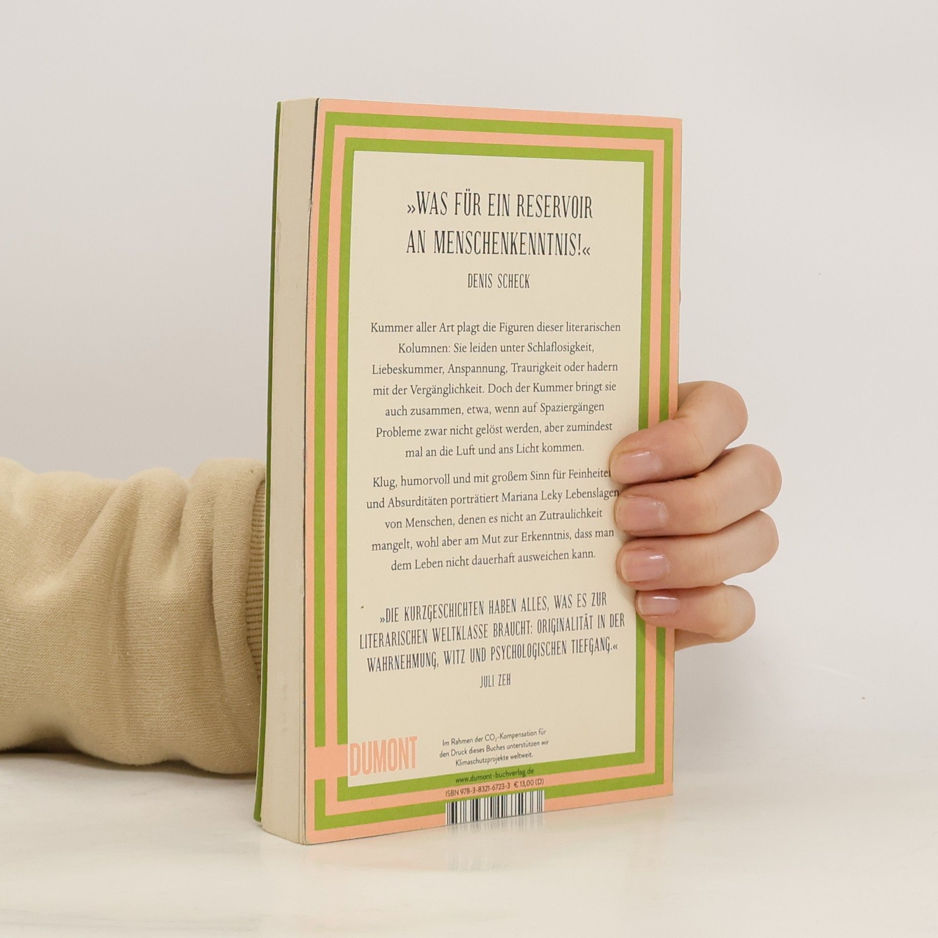 »Alle wirken innerlich blitzblank, nur in unserem Inneren sieht es aus wie bei Hempels unterm Sofa«, denkt sich Kioskbesitzer Armin, als er vergeblich versucht, erfolgreich zu meditieren. Und auch im Inneren der anderen Figuren dieser literarischen Kolumnen herrscht Unordnung: Frau Wiese kann nicht mehr schlafen, Herr Pohl ist nachhaltig verzagt, Lisa hat ihren ersten Liebeskummer, Vadims Hände zittern, Frau Schwerter muss ganz dringend entspannen, ein trauriger Patient hat seine Herde verloren, und Psychoanalytiker Ulrich legt sich mit der Vergänglichkeit an. Kummer aller Art plagt die Menschen, die sich, mal besser, mal schlechter, durch den Alltag manövrieren. Aber der Kummer vereint sie auch, etwa, wenn auf Spaziergängen Probleme zwar nicht gelöst werden, aber zumindest mal an die Luft und ans Licht kommen. Klug, humorvoll und mit großem Sinn für Feinheiten und Absurditäten porträtiert Mariana Leky Lebenslagen von Menschen, denen es nicht an Zutraulichkeit mangelt, wohl aber am Mut zur Erkenntnis, dass man dem Leben nicht dauerhaft ausweichen kann. Die in ›Kummer aller Art‹ versammelten Texte erschienen erstmals als Kolumnen in PSYCHOLOGIE HEUTE.