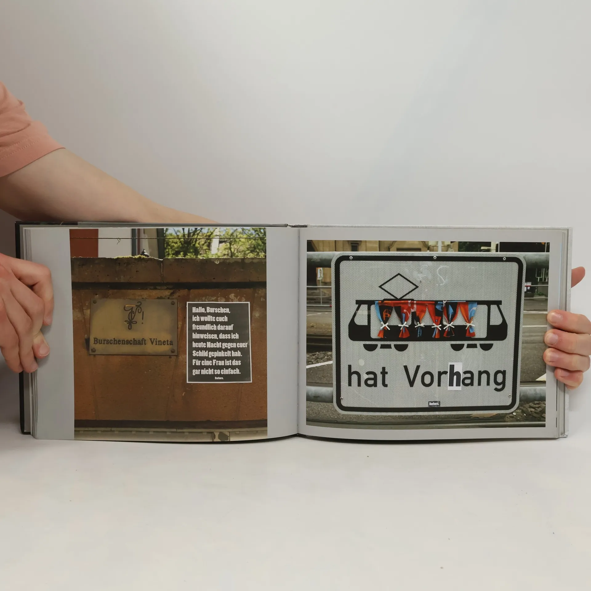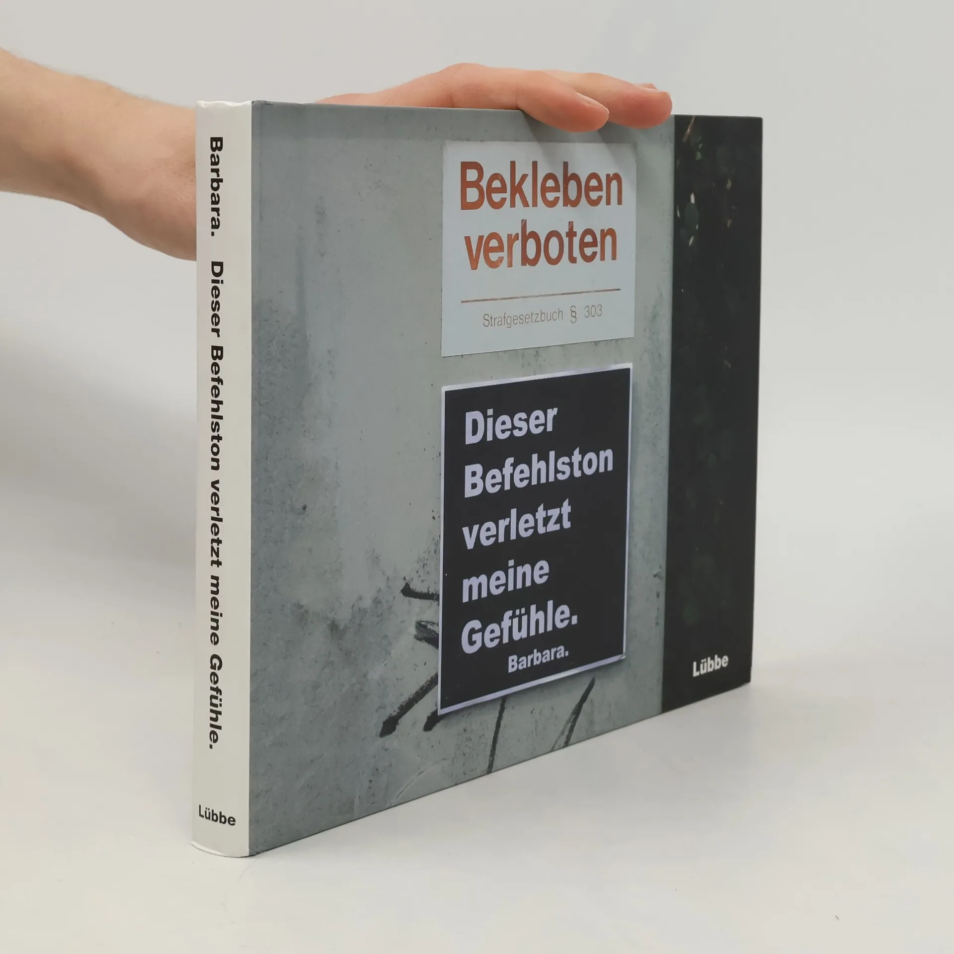 Ich (k)lebe, also bin ich. Seit einiger Zeit passieren an ausgewählten Orten Deutschlands mysteriöse Dinge: Eine Unbekannte namens Barbara verwandelt Schilder, Plakate und Infotafeln in verblüffende Kunstwerke, die mit Humor und Fantasie in den öffentlichen Raum funken. Spielerisch, ironisch und subversiv entlarvt sie hohle Slogans, unterläuft sinnfreie Verbote und führt wortreiche Warnungen ins Absurde. Dieser Befehlston verletzt meine Gefühle ist ein urbanes Fotobuch mit ihren originellsten Werken, denn:Unser Schilderwald braucht Barbara.