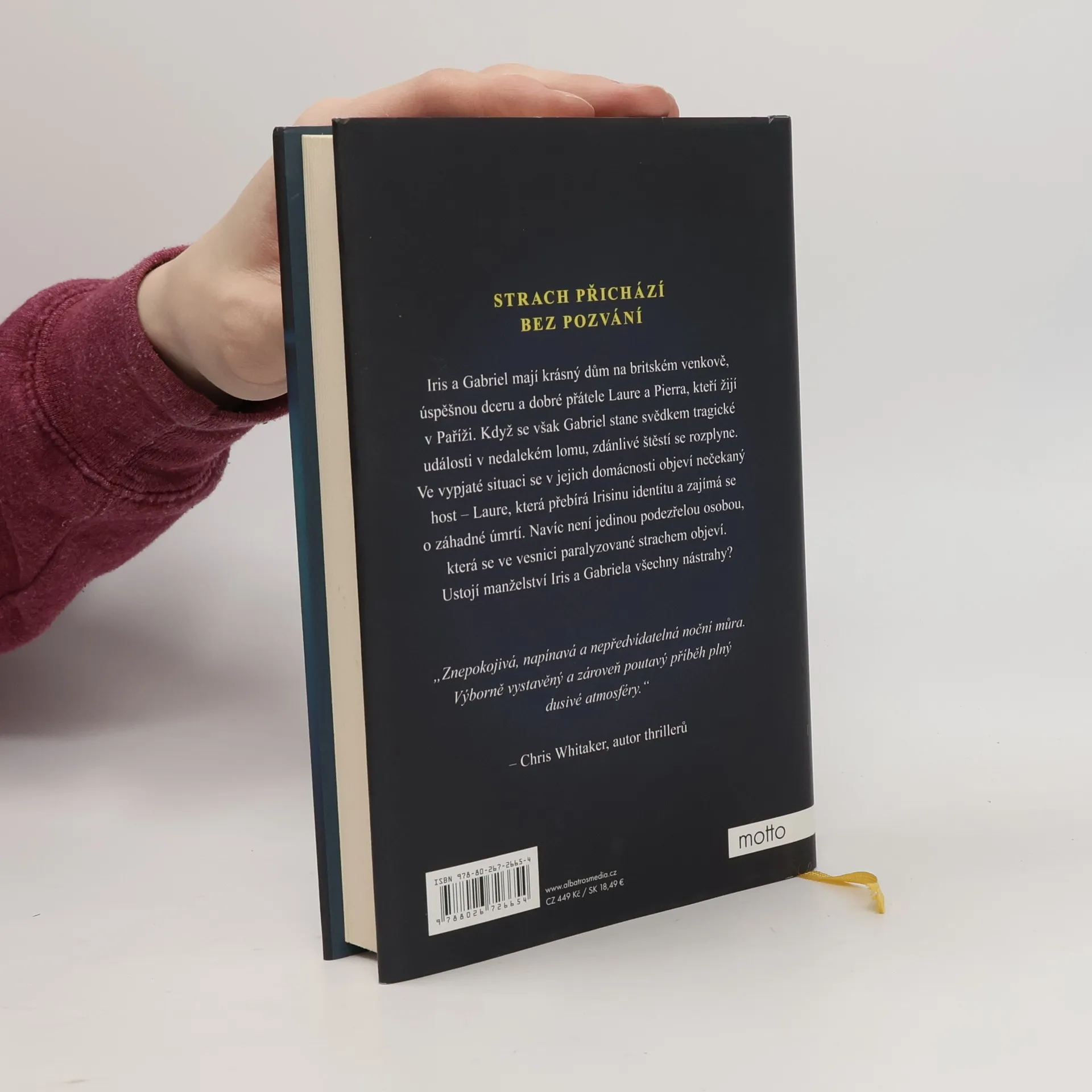 Strach přichází bez pozvání. Iris a Gabriel mají krásný dům na britském venkově, úspěšnou dceru a dobré přátele Laurie a Pierra, kteří žijí v Paříži. Když se však Gabriel stane svědkem tragické události v nedalekém lomu, zdánlivé štěstí se rozplyne. Ve vypjaté situaci se v jejich domácnosti objeví nečekaný host – Laurie, která přebírá Irisinu identitu a zajímá se o záhadné úmrtí. Navíc není jedinou podezřelou osobou, která se ve městě paralyzovaném strachem objeví. Ustojí manželství Iris a Gabriela všechny nástrahy?