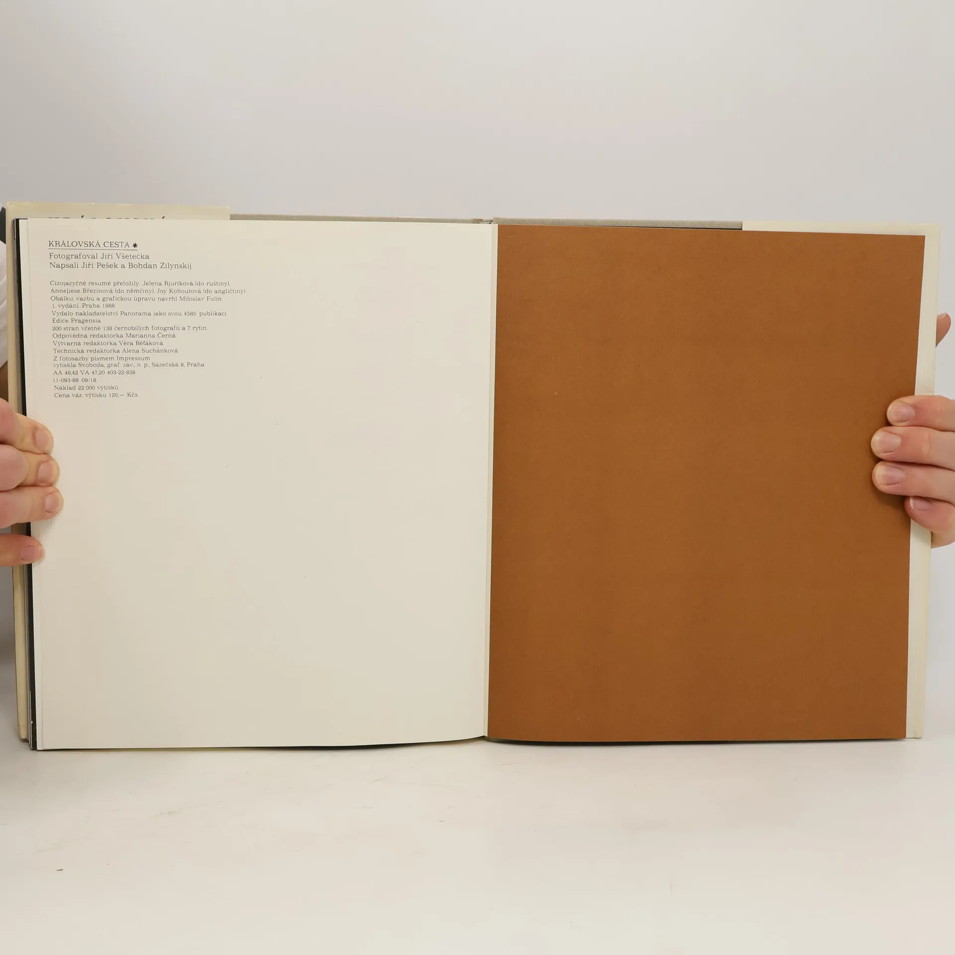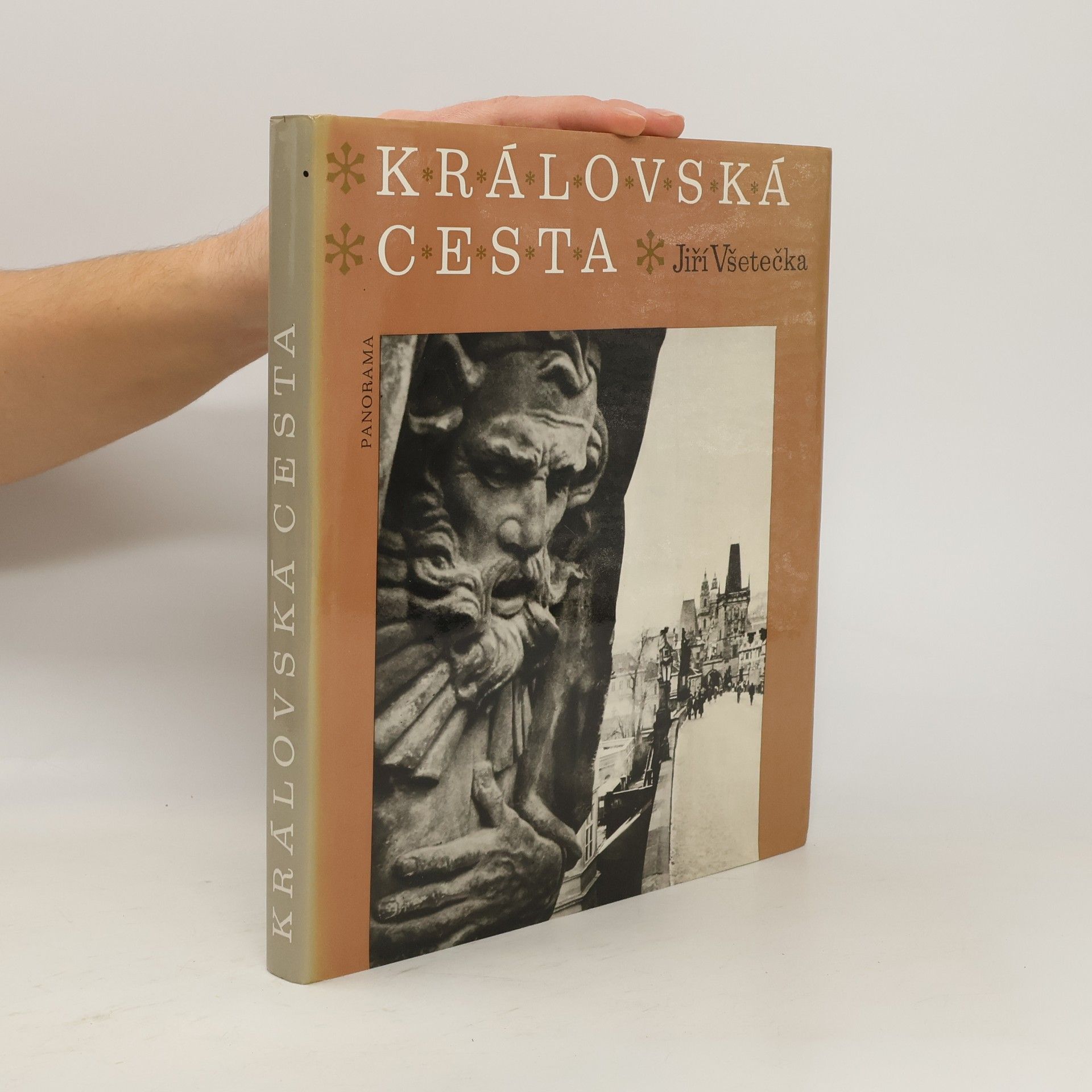 Fotografická procházka historickou trasou, po níž vedla korunovační cesta českých králů (od Králova dvora u Prašné brány na Pražský hrad). Královskou cestou nás v této knize provází fotograf J. Všetečka. Jeho černobílé snímky zachycují architektonické památky na cestě, různé detaily architektury, domovních znamení, soch, dveří, sloupů, portálů. Některé fotografie mají poetický charakter - jsou to noční a zimní snímky města. Zasvěcený výklad k jednotlivým částem Královské cesty podali J. Pešek a B. Zilynskij. Úvod knihy je historický a přibližuje korunovace českých králů v různých staletích. Korunovační průvody zpodobňují dobové rytiny J. J. Dietzlera z 18. století, které najdeme v úvodní části knihy.