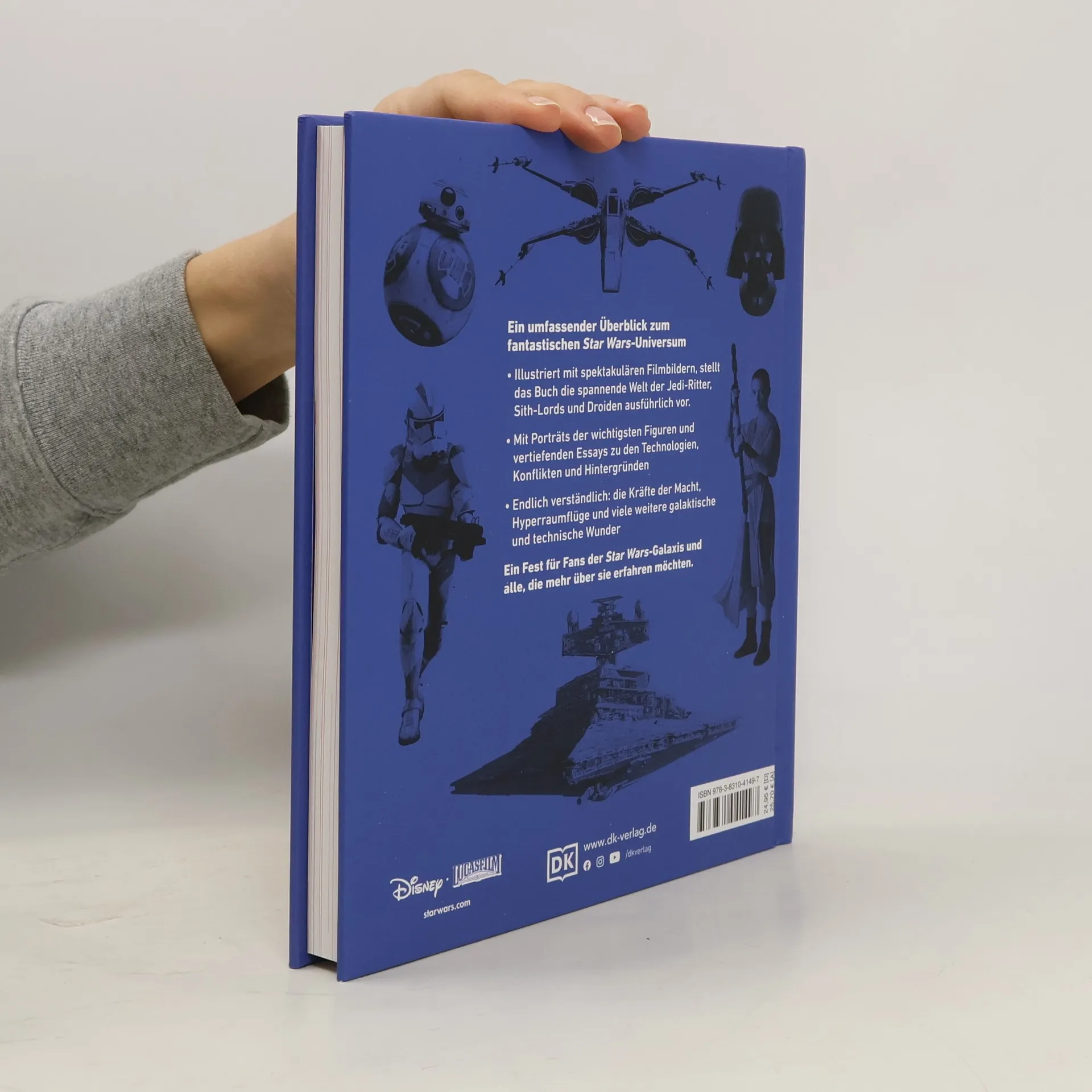 Umfassendes Star Wars™ Wissen in einem Buch Bereit für eine spektakuläre Reise durch die weit, weit entfernte Galaxis? Das Star Wars Buch präsentiert die wichtigsten Helden und Schurken der Star Wars Galaxis! Spektakuläre Originalfilmbilder , fantastische Infografiken und spannendes Expertenwissen lassen die Fans das Leben von Yoda, Luke Skywalker, Darth Vader und anderer hautnah miterleben. Der perfekte Überblick zu den facettenreichen Star Wars Figuren, Schauplätzen und Raumschiffen aus allen Star Wars Filmen und Serien , unter anderem mit Infos zur Serie The Mandalorian ! Das große Star Wars Buch zum Nachschlagen – die gesamte Star Wars Saga auf einen Blick Vom Aufstieg Anakin Skywalkers, den Klonkriegen und der Zeit der Rebellen über die Zerstörung des bösen Imperiums bis zum Erstarken der Ersten Ordnung und dem Kampf des Widerstands – dieses Buch entführt auf eine sensationelle Zeitreise durch über 40 Jahre Star Wars Geschichte . Der neue Titel aus der DK Kultreihe Big Ideas. - Die wichtigsten Star Wars Charaktere, Star Wars Fahrzeuge & Schauplätze - Spannende Hintergrundinfos & detailreiche Analysen zu dem Leben der Helden & ihrer Ausrüstung - Spektakuläre Originalfotos aus allen Star Wars Filmen & Star Wars Serien Die einzigartige Star Wars Welt fundiert & zugänglich aufbereitet: Die geballte Ladung Star Wars Wissen für echte Fans!