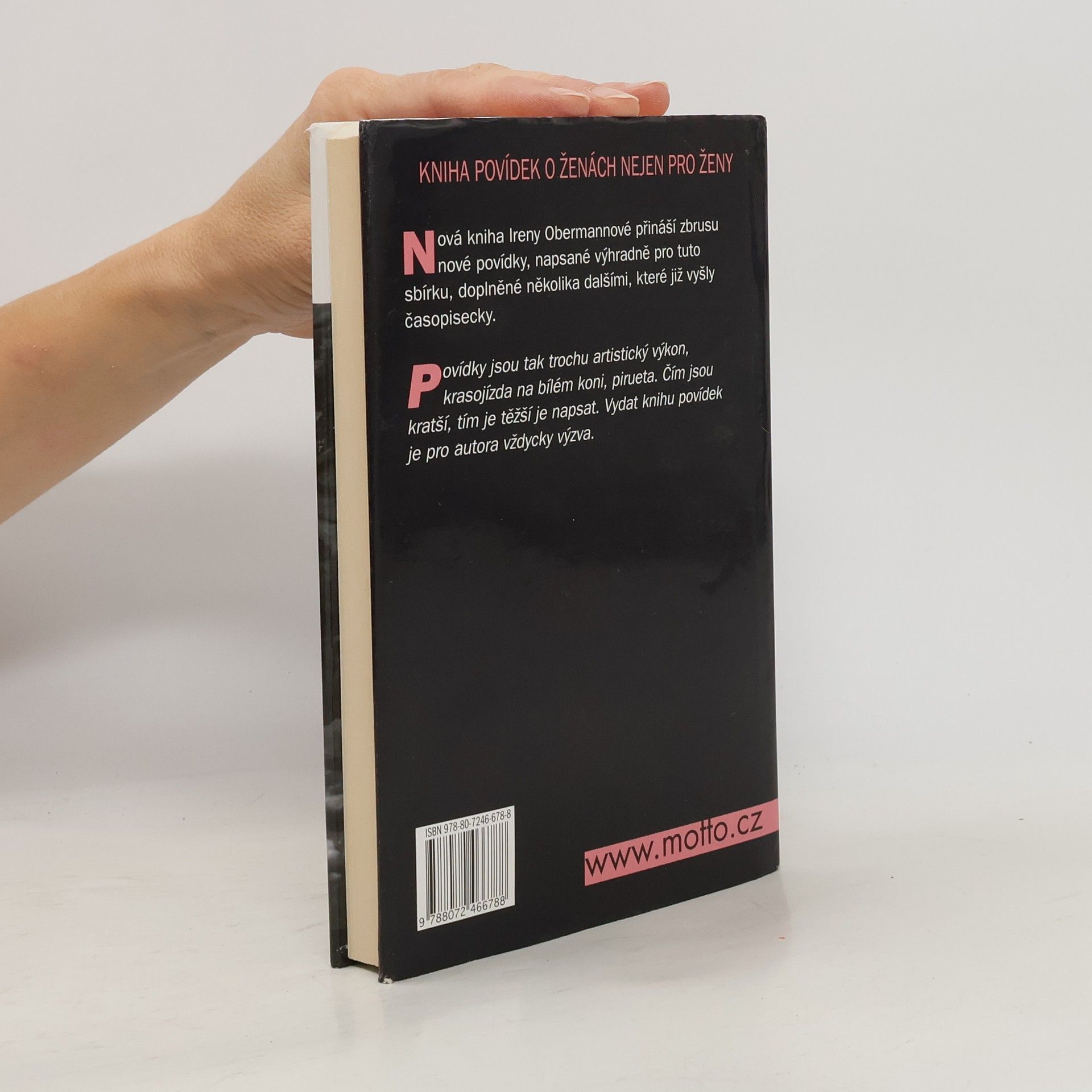 Další kniha Ireny Obermannové přináší zbrusu nové povídky, napsané výhradně pro tuto sbírku, doplněné několika dalšími, které již vyšly časopisecky. Povídky jsou tak trochu artistický výkon, krasojízda na bílém koni, pirueta. Čím jsou kratší, tím je těžší je napsat. Vydat knihu povídek je pro autora vždycky výzva.