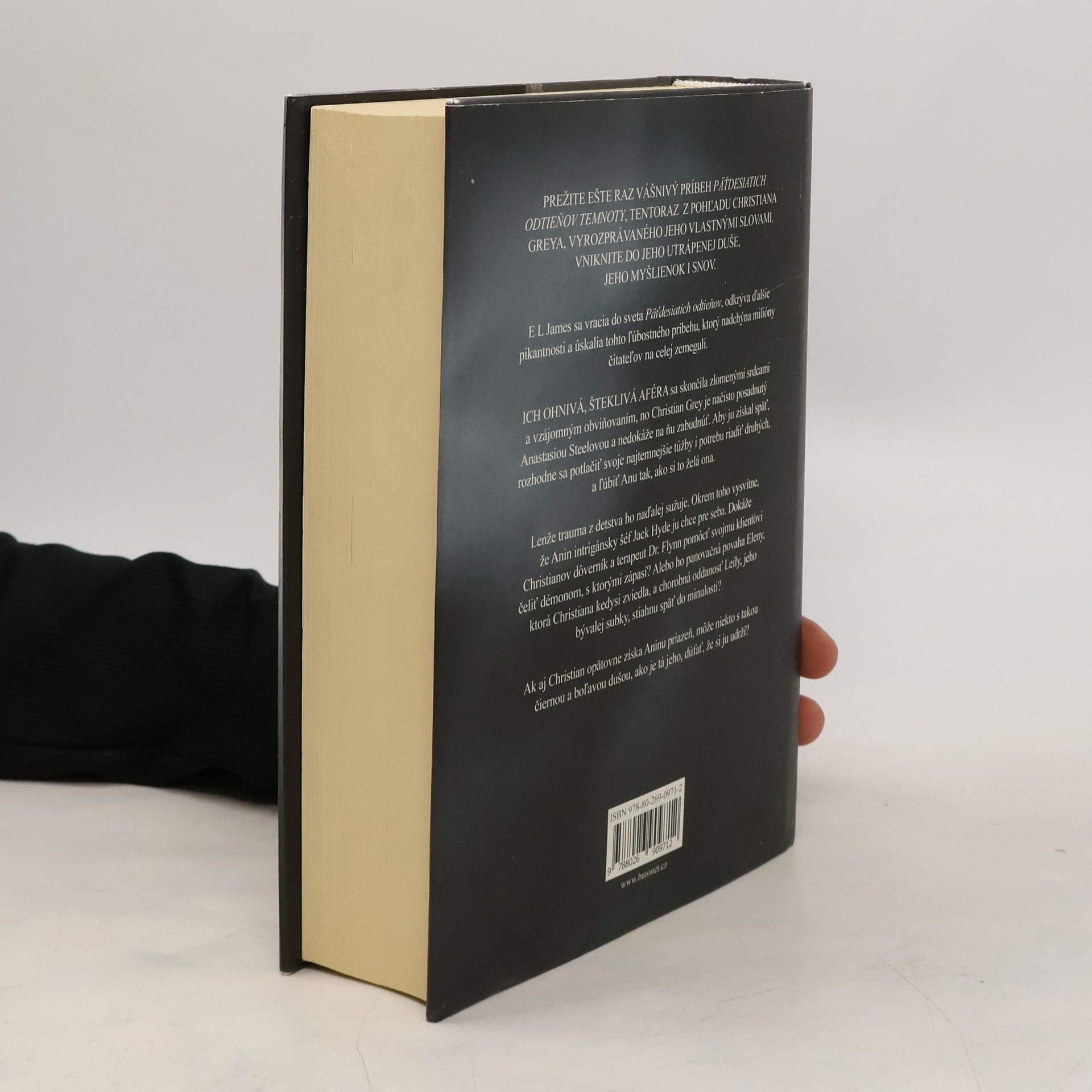 E L James sa vracia do sveta Päťdesiatich odtieňov, odkrýva ďalšie pikantnosti a úskalia tohto ľúbostného príbehu, ktorý nadchýna milióny čitateľov na celej zemeguli. ICH OHNIVÁ, ŠTEKLIVÁ AFÉRA sa skončila zlomenými srdcami a vzájomným obviňovaním, no Christian Grey je načisto posadnutý Anastasiou Steelovou a nedokáže na ňu zabudnúť. Aby ju získal späť, rozhodne sa potlačiť svoje najtemnejšie túžby i potrebu riadiť druhých, a ľúbiť Anu tak, ako si to želá ona. Lenže trauma z detstva ho naďalej sužuje. Okrem toho vysvitne, že Anin intrigánsky šéf Jack Hyde ju chce pre seba. Dokáže Christianov dôverník a terapeut Dr. Flynn pomôcť svojmu klientovi čeliť démonom, s ktorými zápasí? Alebo ho panovačná povaha Eleny, ktorá Christiana kedysi zviedla, a chorobná oddanosť Leily, jeho bývalej subky, stiahnu späť do minulosti? Ak aj Christian opätovne získa Aninu priazeň, môže niekto s takou čiernou a boľavou dušou, ako je tá jeho, dúfať, že si ju udrží?