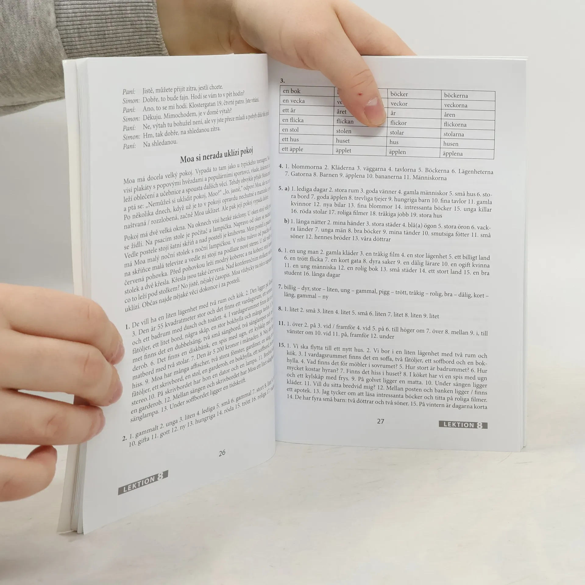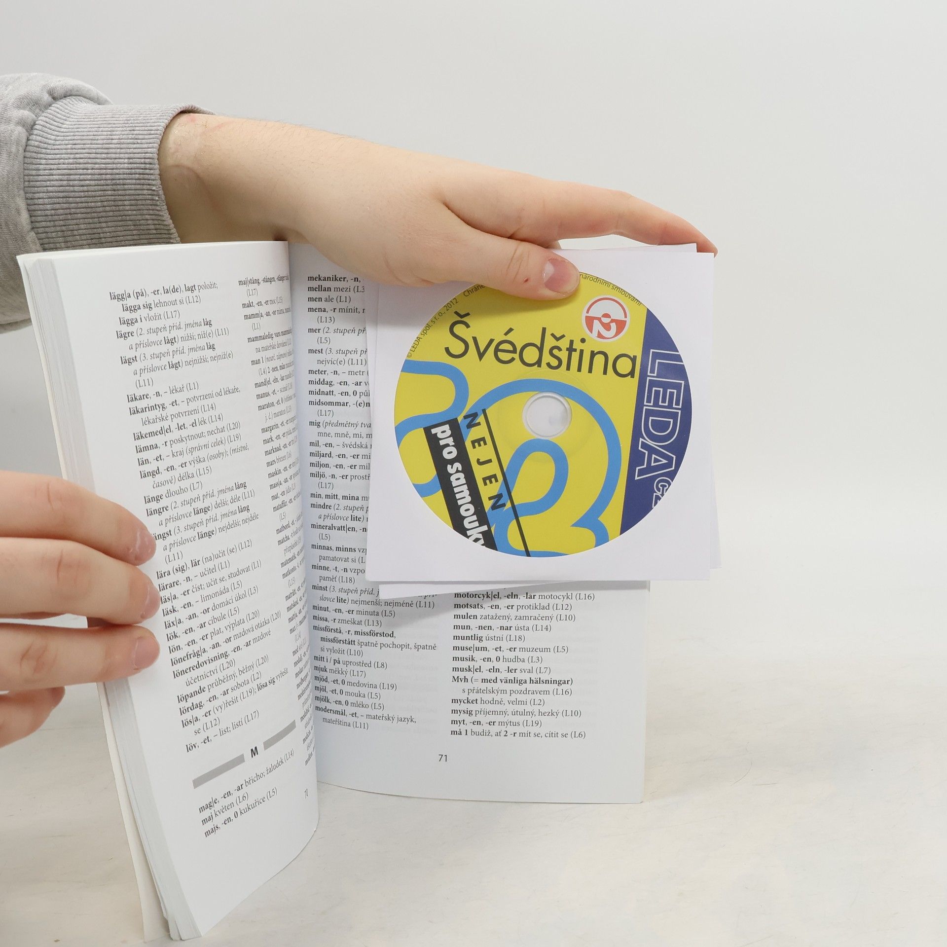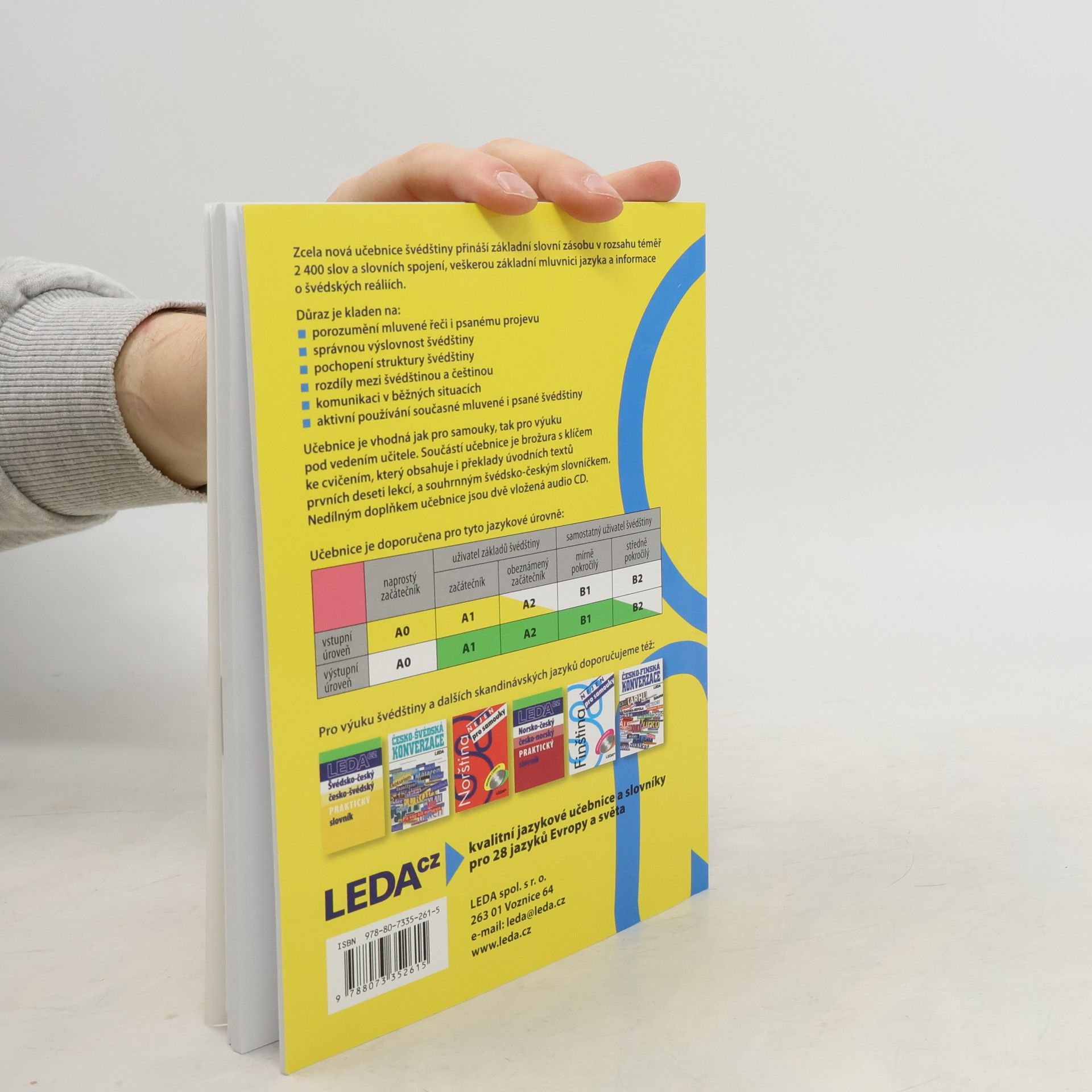 Zcela nová učebnice švédštiny je určena jak pro samostatné studium, tak pro výuku pod vedením učitele. S její pomocí si osvojíte základní slovní zásobu v rozsahu téměř 2 400 slov, frazeologii, gramatiku a výslovnost švédštiny. Naučíte se komunikovat v běžných situacích a dozvíte se také hodně o švédských reáliích. Samostatná úvodní kapitola je věnována výslovnosti švédštiny. Každá z následujících dvaceti tematicky zaměřených lekcí obsahuje dva úvodní dialogy či texty, slovní zásobu, mluvnickou část, cvičení a doplňkovou část. Součástí učebnice je brožura s klíčem ke cvičením, který uvádí i překlady úvodních textů prvních deseti lekcí, a souhrnným švédsko-českým slovníčkem..