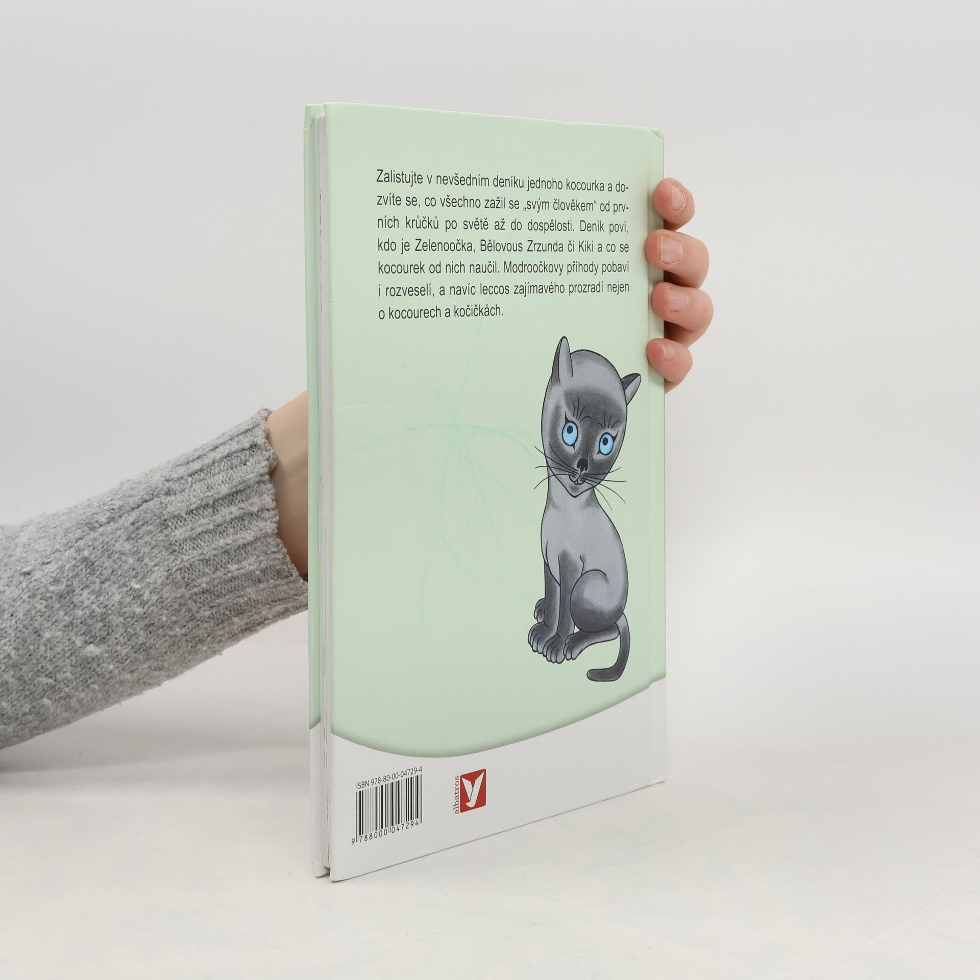 Hřejivé vyprávění malého kocourka o všem, co zažil se svým člověkem od prvních krůčků po světě až po chvíli, kdy se sám stal pyšným otcem čtyř koťátek. Modroočkův deník nám prozradí, kdo je Zelenoočka, Bělovous Zrzunda, Kiki a co se od nich náš kocourek naučil. Modroočkovy příhody pobaví a rozveselí, a navíc leccos zajímavého vypoví o vlastnostech a zvycích různých zvířátek. Mnohé z příhod už děti znají z rozhlasu i televize, nyní si o nich mohou pěkně číst v této půvabné knížce.
