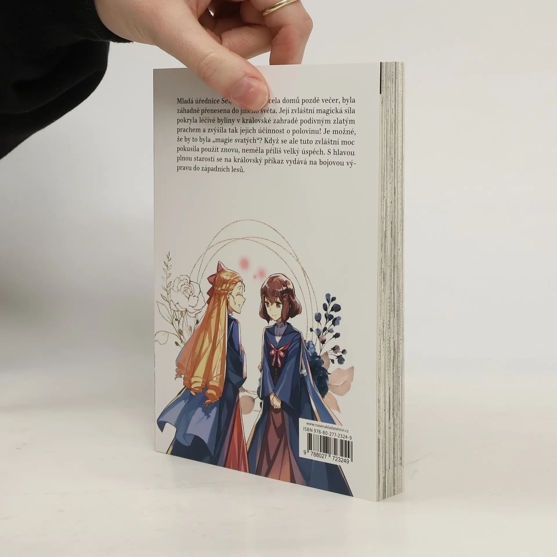 Mladá úřednice Sei, která se vracela domů pozdě večer, byla záhadně přenesena do jiného světa. Její zvláštní magická síla pokryla léčivé byliny v královské zahradě podivným zlatým prachem a zvýšila tak jejich účinnost o polovinu! Je možné, že by to byla "magie svatých"? Když se ale tuto zvláštní moc pokusí použít znovu, nemá příliš velký úspěch. S hlavou plnou starostí se na královský příkaz vydává na výpravu do západního lesa.