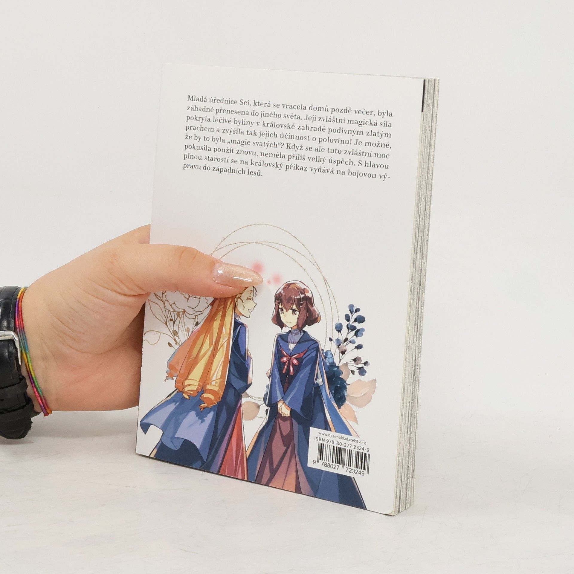 Mladá úřednice Sei, která se vracela domů pozdě večer, byla záhadně přenesena do jiného světa. Její zvláštní magická síla pokryla léčivé byliny v královské zahradě podivným zlatým prachem a zvýšila tak jejich účinnost o polovinu! Je možné, že by to byla "magie svatých"? Když se ale tuto zvláštní moc pokusí použít znovu, nemá příliš velký úspěch. S hlavou plnou starostí se na královský příkaz vydává na výpravu do západního lesa.