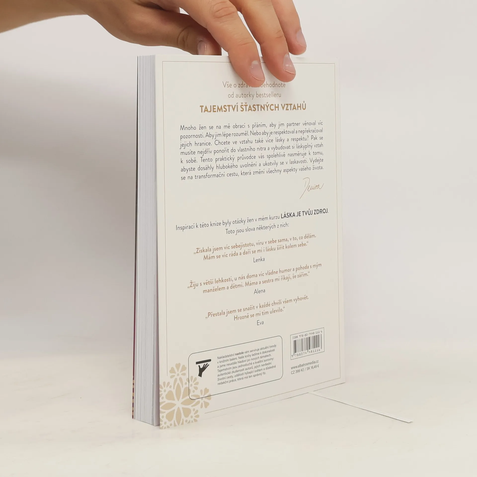 Vše o zdravé sebehodnotě. Průvodce od autorky bestselleru Tajemství šťastných vztahů. Mnoho žen se na mě obrací s přáním, aby jim partner věnoval více pozornosti. Aby jim lépe rozuměl. Nebo aby je respektoval a nepřekračoval jejich hranice. Chcete ve vztahu také více lásky a respektu? Pak se musíte nejdřív ponořit do vlastního nitra a vybudovat si láskyplný vztah k sobě. Tento praktický průvodce vás spolehlivě nasměruje k tomu, abyste dosáhly hlubokého uvolnění a ukotvily se v laskavosti. Vydejte se na transformační cestu, která změní všechny aspekty vašeho života.