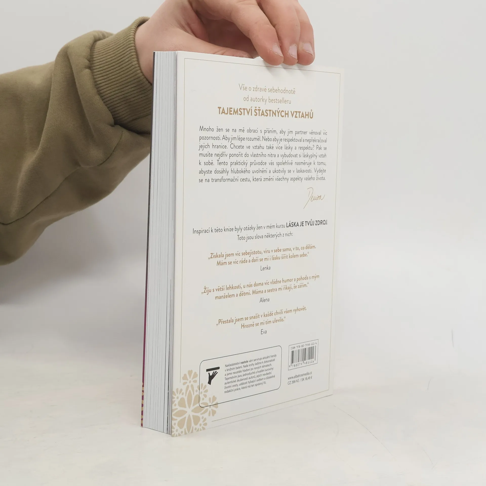 Vše o zdravé sebehodnotě. Průvodce od autorky bestselleru Tajemství šťastných vztahů. Mnoho žen se na mě obrací s přáním, aby jim partner věnoval více pozornosti. Aby jim lépe rozuměl. Nebo aby je respektoval a nepřekračoval jejich hranice. Chcete ve vztahu také více lásky a respektu? Pak se musíte nejdřív ponořit do vlastního nitra a vybudovat si láskyplný vztah k sobě. Tento praktický průvodce vás spolehlivě nasměruje k tomu, abyste dosáhly hlubokého uvolnění a ukotvily se v laskavosti. Vydejte se na transformační cestu, která změní všechny aspekty vašeho života.