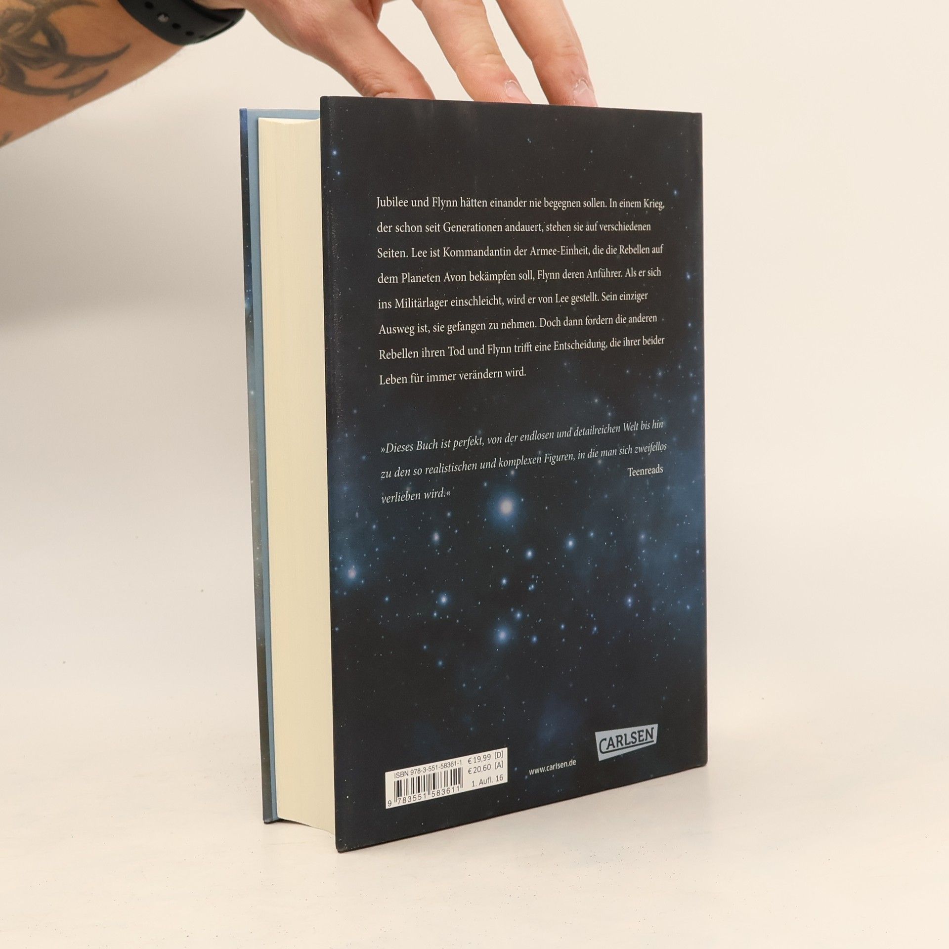 Jubilee und Flynn hätten einander nie begegnen sollen. In einem Krieg, der schon seit Generationen andauert, stehen sie auf verschiedenen Seiten. Denn Lee ist Kommandantin der Armee-Einheit, die die Rebellen auf dem Planeten Avon bekämpfen soll, Flynn deren Anführer. Als er sich ins Militärlager einschleicht, wird er von Lee gestellt. Sein einziger Ausweg ist, sie gefangen zu nehmen. Doch dann fordern die anderen Rebellen ihren Tod und Flynn trifft eine Entscheidung, die ihrer beider Leben für immer verändern wird. Alle Bände der Serie »These Broken Stars«: These Broken Stars − Lilac und TarverThese Broken Stars − Jubilee und FlynnThese Broken Stars − Sofia und Gideon Die Serie ist abgeschlossen.
