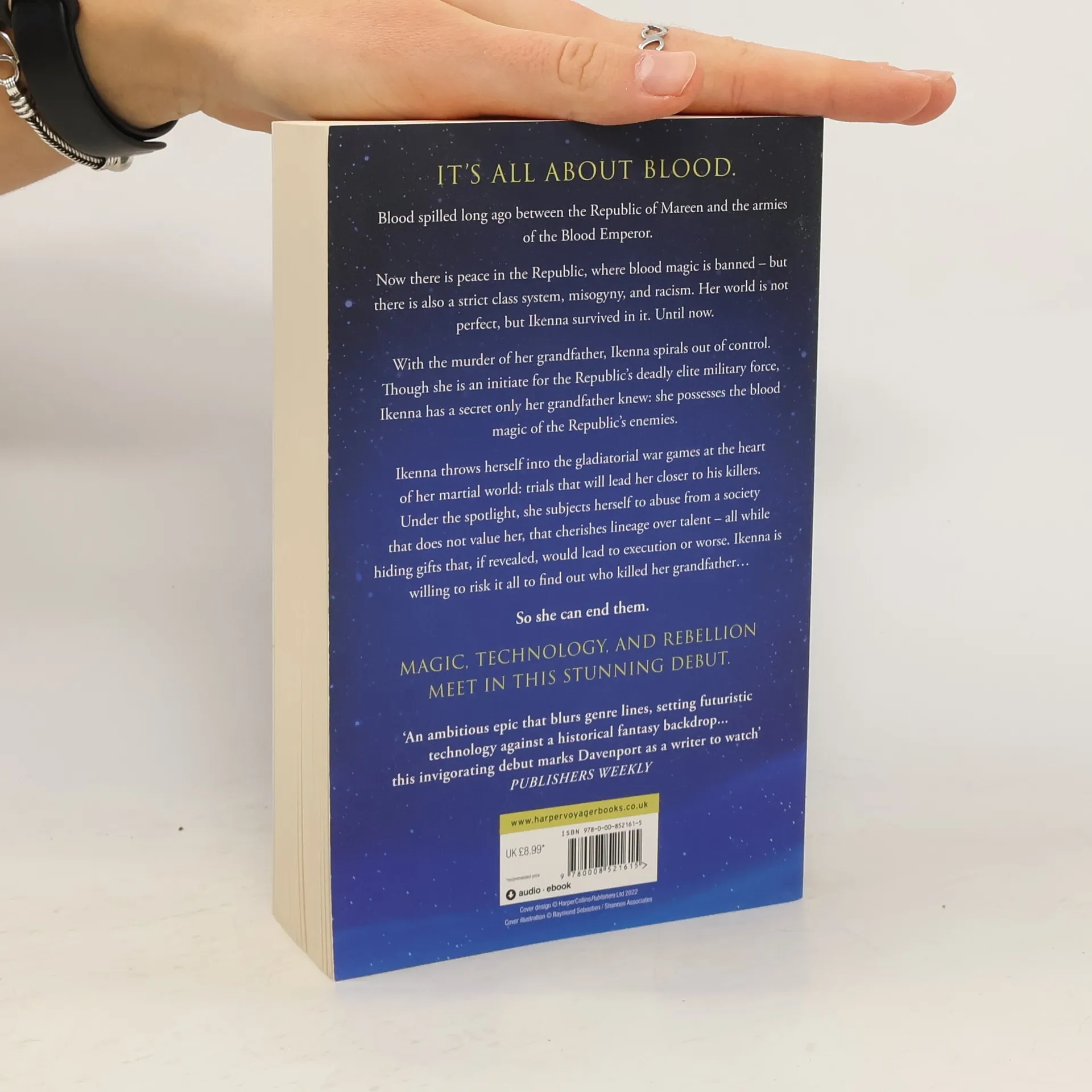 'AN ENTHRALLING, UNPUTDOWNABLE READ' Kalynn Bayron, bestselling author of CINDERELLA IS DEAD 'A DAMN GOOD TIME' Hannah Whitten, NYT bestselling author of FOR THE WOLF N.E. Davenport's fast-paced, action-packed debut kicks off a duology perfect for fans of RED RISING AND AURORA RISING It's all about blood. Blood spilled long ago between the Republic of Mareen and the armies of the Blood Emperor, ending all blood magic. Now there is peace in the Republic - but there is also a strict class system, misogyny, and racism. Her world is not perfect, but Ikenna survived in it. Until now. With the murder of her grandfather, Ikenna spirals out of control. Though she is an initiate for the Republic's deadly elite military force, Ikenna has a secret only her grandfather knew: she possesses the blood magic of the Republic's enemies. Ikenna throws herself into the gladiatorial war games at the heart of her martial world: trials that will lead her closer to his killers. Under the spotlight, she subjects herself to abuse from a society that does not value her, that cherishes lineage over talent - all while hiding gifts that, if revealed, would lead to execution or worse. Ikenna is willing to risk it all to find out who killed her grandfather... So she can end them. Magic, technology, and rebellion meet in this stunning debut - part one of a duology that sees a young Black woman rise through misogyny and racism to become an elite warrior.