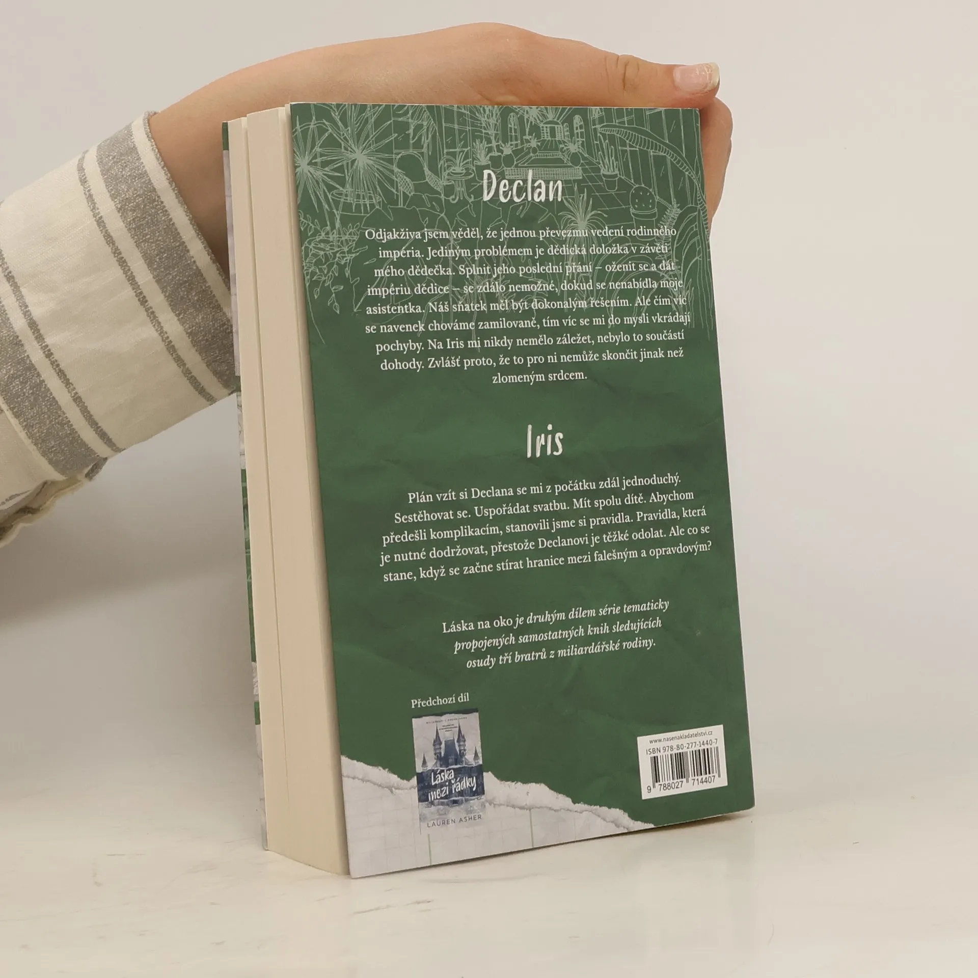 Declan Odjakživa jsem věděl, že jednou převezmu vedení rodinného mediálního impéria. Jediný problém je dědická doložka v závěti mého dědečka. Splnit jeho poslední přání – oženit se a dát impériu dědice – se zdálo nemožné, dokud se nenabídla moje asistentka. Náš sňatek měl být dokonalým řešením mého největšího problému. Ale čím víc se navenek chováme zamilovaně, tím víc se mi do mysli vkrádají pochyby. Na Iris mi nikdy nemělo záležet, nebylo to součástí dohody. Zvlášť proto, že to pro ni nemůže skončit jinak než zlomeným srdcem. Iris Plán vzít si Declana se mi z počátku zdál jednoduchý. Sestěhovat se. Uspořádat svatbu. Mít spolu dítě. Abychom předešli komplikacím, stanovili jsme si pravidla. Pravidla, která je nutné dodržovat, přestože Declanovi je těžké odolat. Ale co se stane, když se začne stírat hranice mezi falešným a opravdovým? Láska na oko je druhým dílem série tematicky propojených samostatných knih, sledujících osudy tří bratrů z miliardářské rodiny.