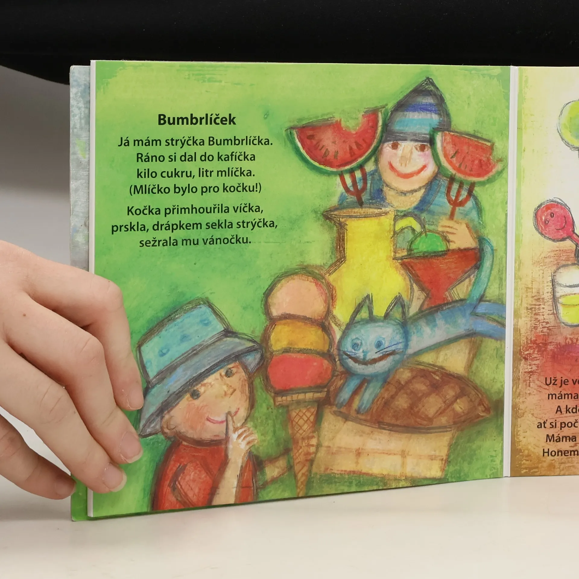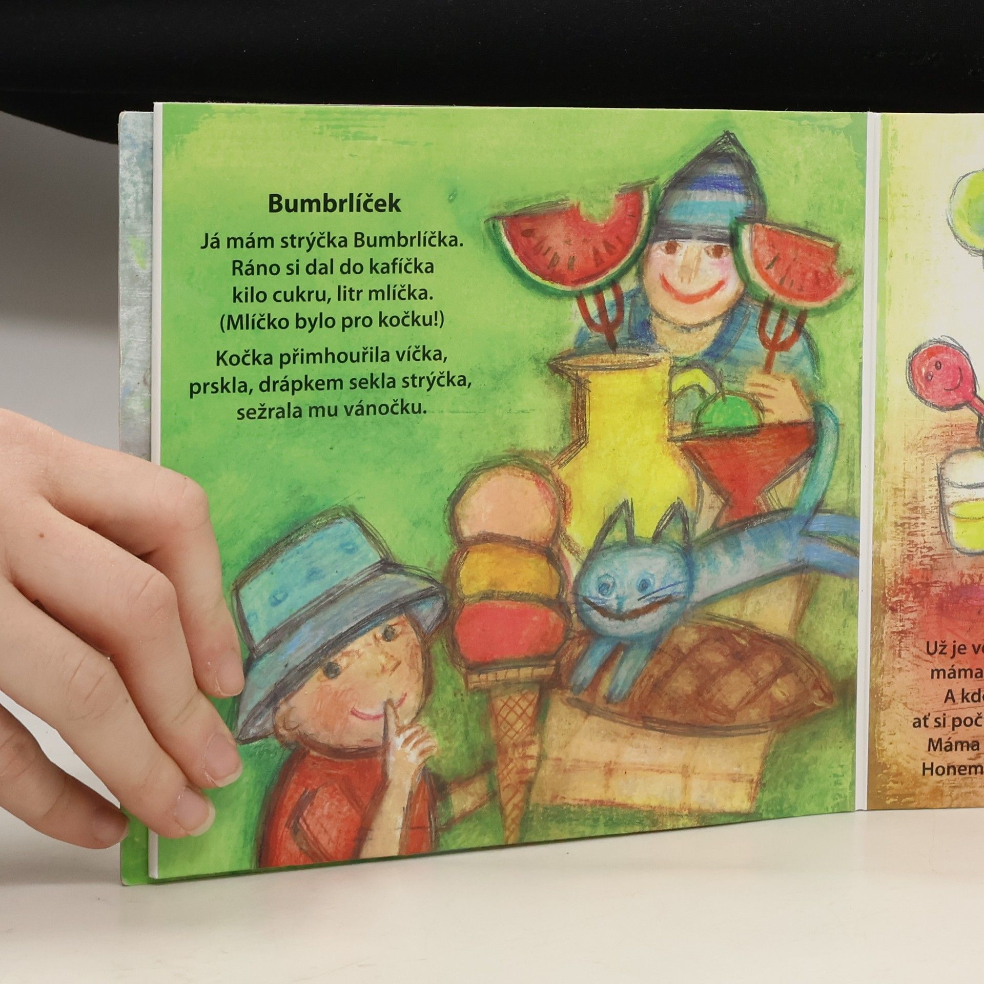 Veselé básničky a říkanky, které si hrají s českým jazykem. V rozkládacím leporelu s celostránkovými pestrobarevnými ilustracemi.
