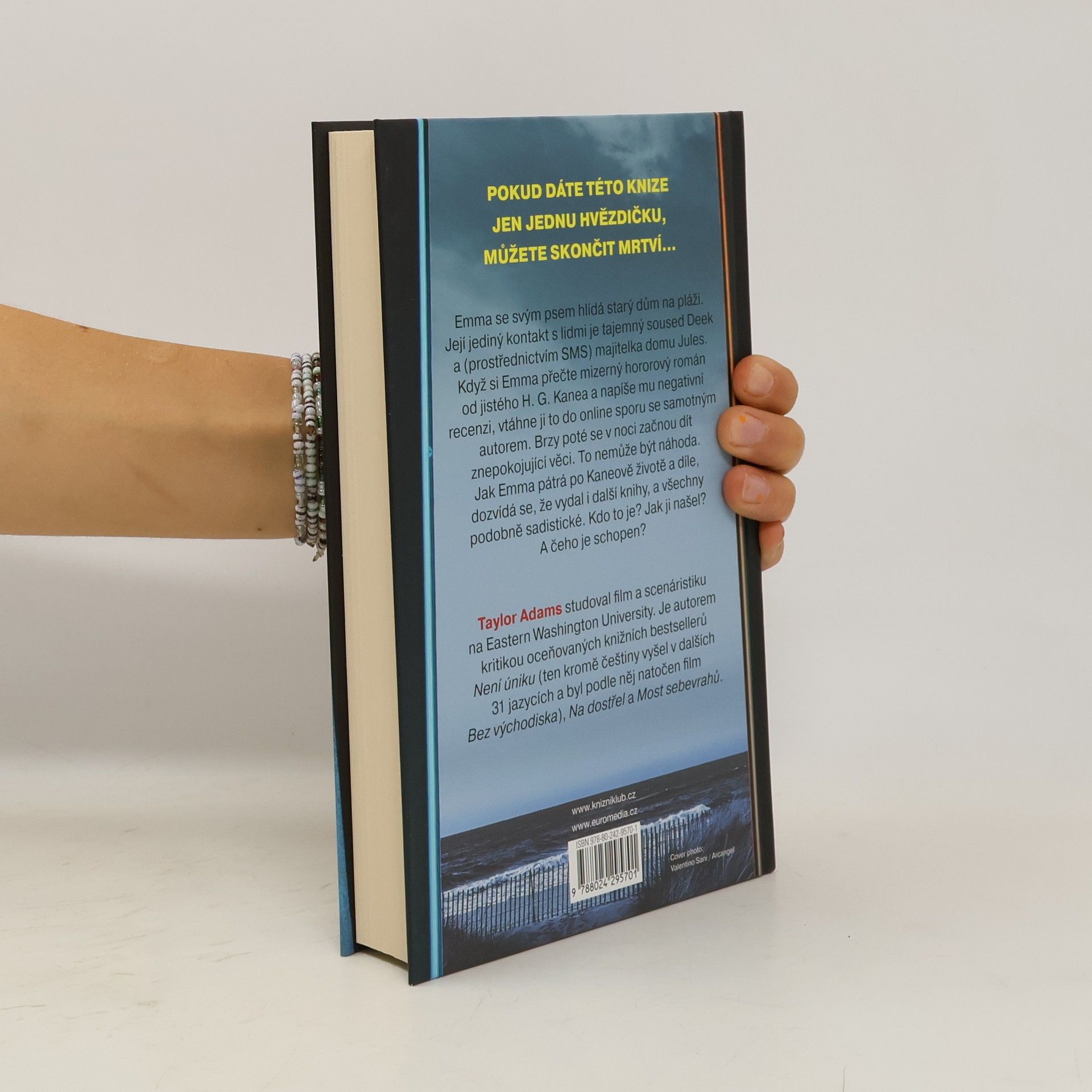 Emma Carpenterová se svým zlatým retrívrem hlídá starý dům na pláži. Její jediný kontakt s lidmi je tajemný starý soused Deek a (prostřednictvím SMS) majitelka domu Jules. Když si Emma přečte mizerný, ale děsivý hororový román od jistého H. G. Kanea a napíše mu jednohvězdičkovou recenzi, vtáhne ji to do online sporu se samotným autorem. Brzy poté se v noci začnou dít znepokojující věci. To přece nemůže být náhoda. Že by ji spisovatel pronásledoval? Jak Emma pátrá po Kaneově životě a díle, dozvídá se, že vydal šestnáct dalších knih, a všechny s podobně sadistickými příběhy. Kdo to však je? Jak ji našel? A čeho je schopen?