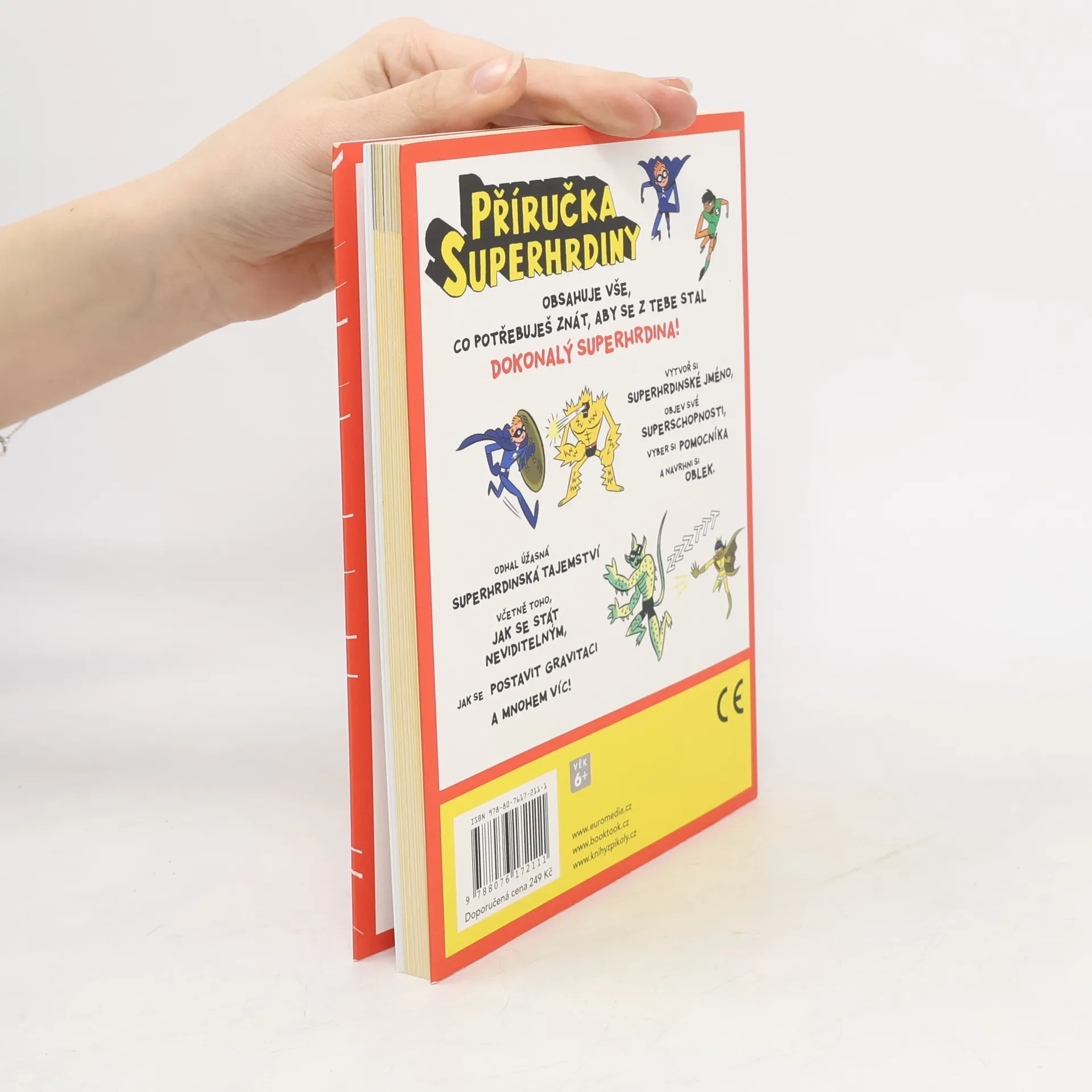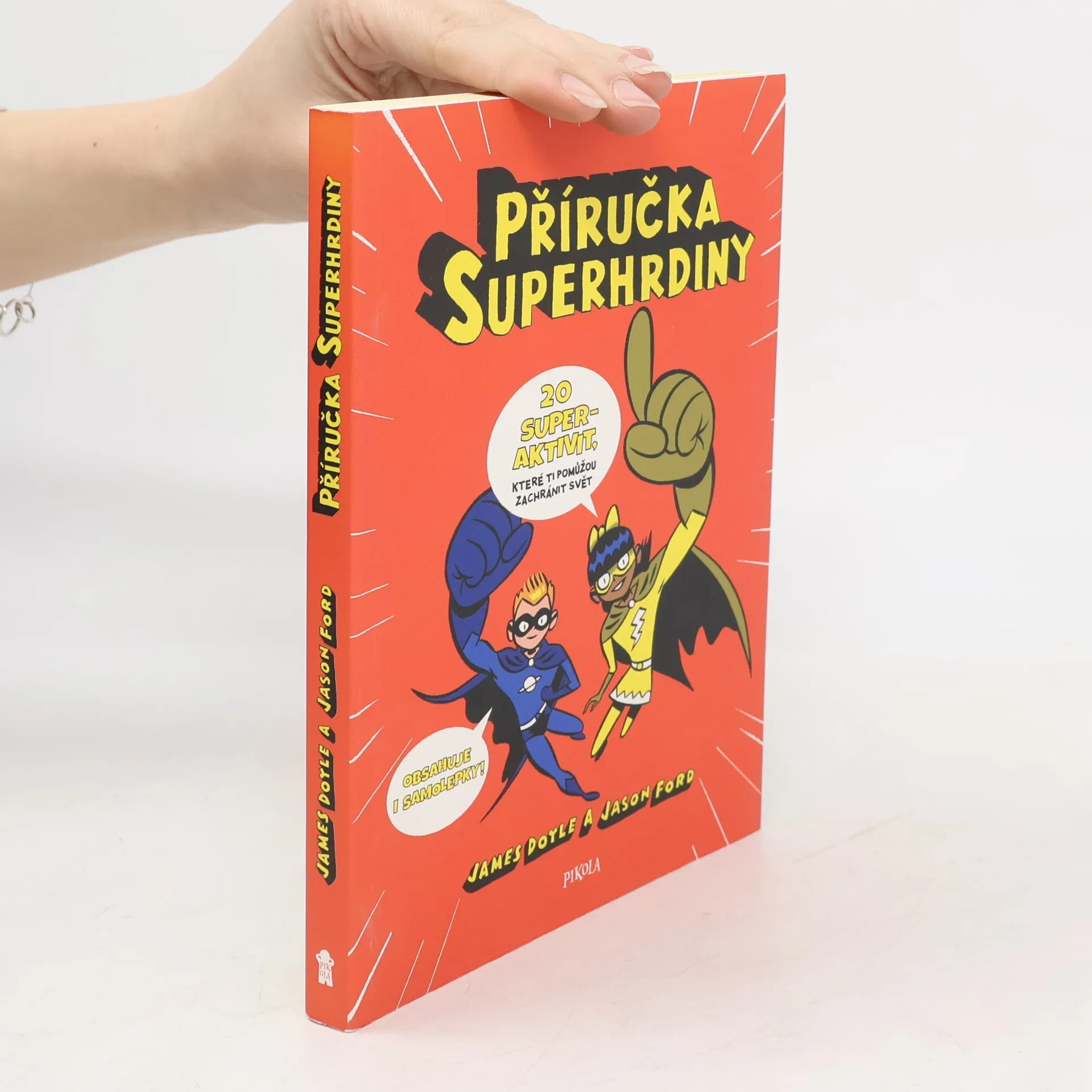 Intenzivní superhrdinský kurz! Čeká na tebe 20 aktivit, které zvýší tvoje superschopnosti a pomůžou ti zachránit svět! Pomocí podrobných návodů s vtipnými obrázky si můžeš vyrobit třeba speciální štít, zrcadlo neviditelnosti, páchnoucí bomby, elektromagnet, imobilizér, naučit se tajnou řeč šifer a nakonec si všechny svoje nadpřirozené schopnosti otestovat! Dokážeš chodit po vejcích? Zmáčknout plechovku? Překonat gravitaci? Když projdeš zkouškou, čeká tě certifikát, supersamolepky a zářná superhrdinská budoucnost.