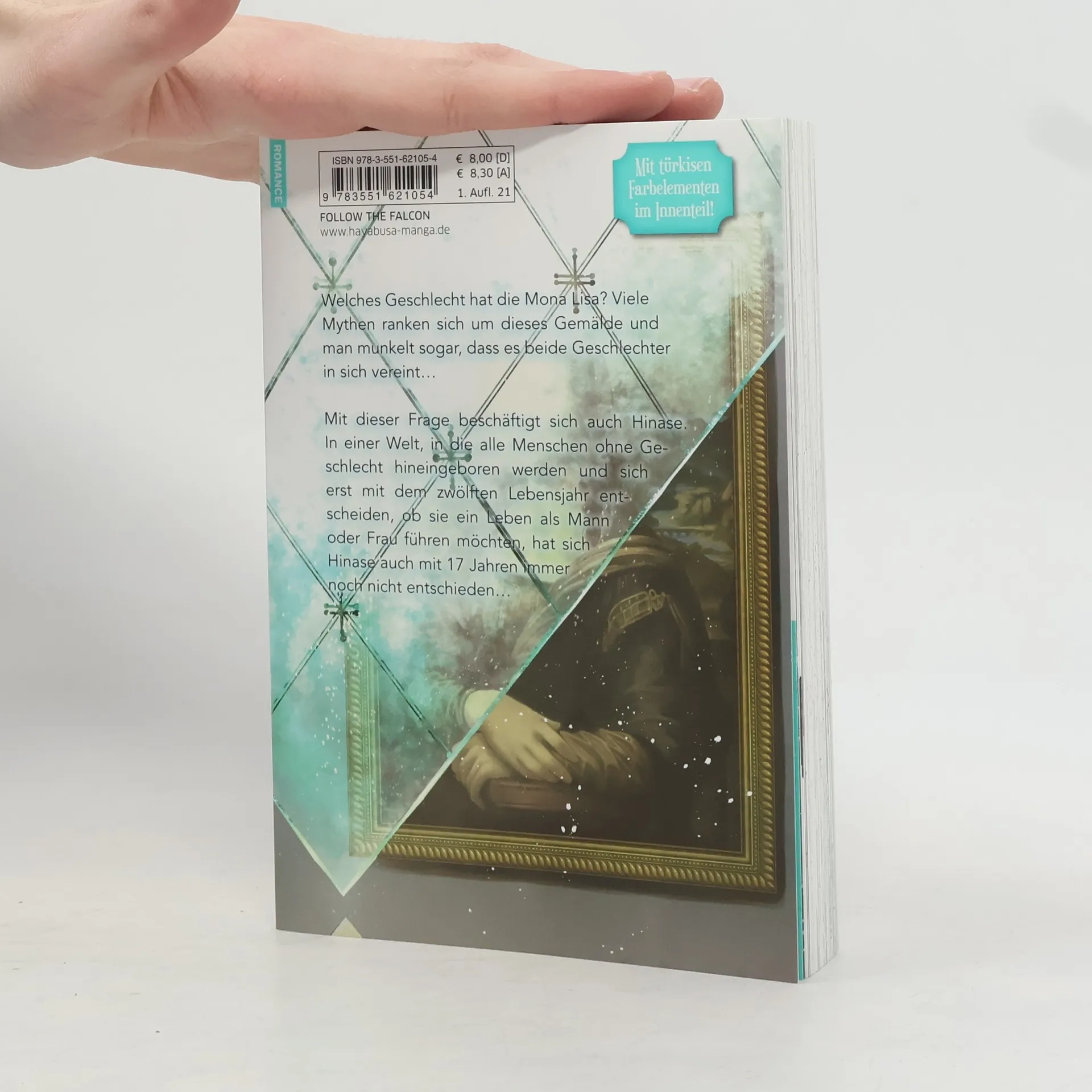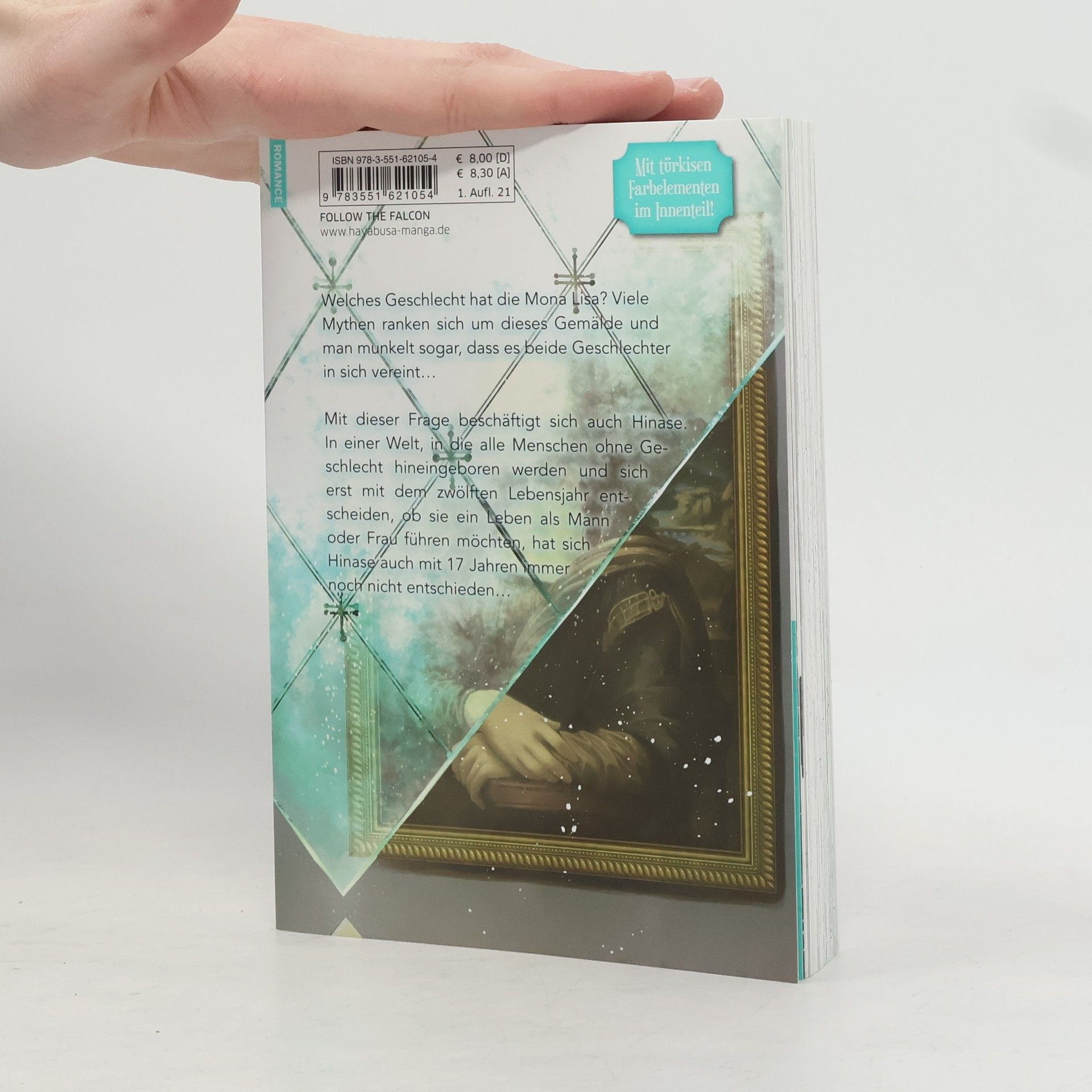Welches Geschlecht hat die Mona Lisa? Viele Mythen ranken sich um dieses Gemälde und man munkelt sogar, dass es beide Geschlechter in sich vereint… Mit dieser Frage beschäftigt sich auch Hinase. In einer Welt, in die alle Menschen ohne Geschlecht hineingeboren werden und sich erst mit dem zwölften Lebensjahr entscheiden, ob sie ein Leben als Mann oder Frau führen möchten, hat sich Hinase auch mit 17 Jahren immer noch nicht entschieden…