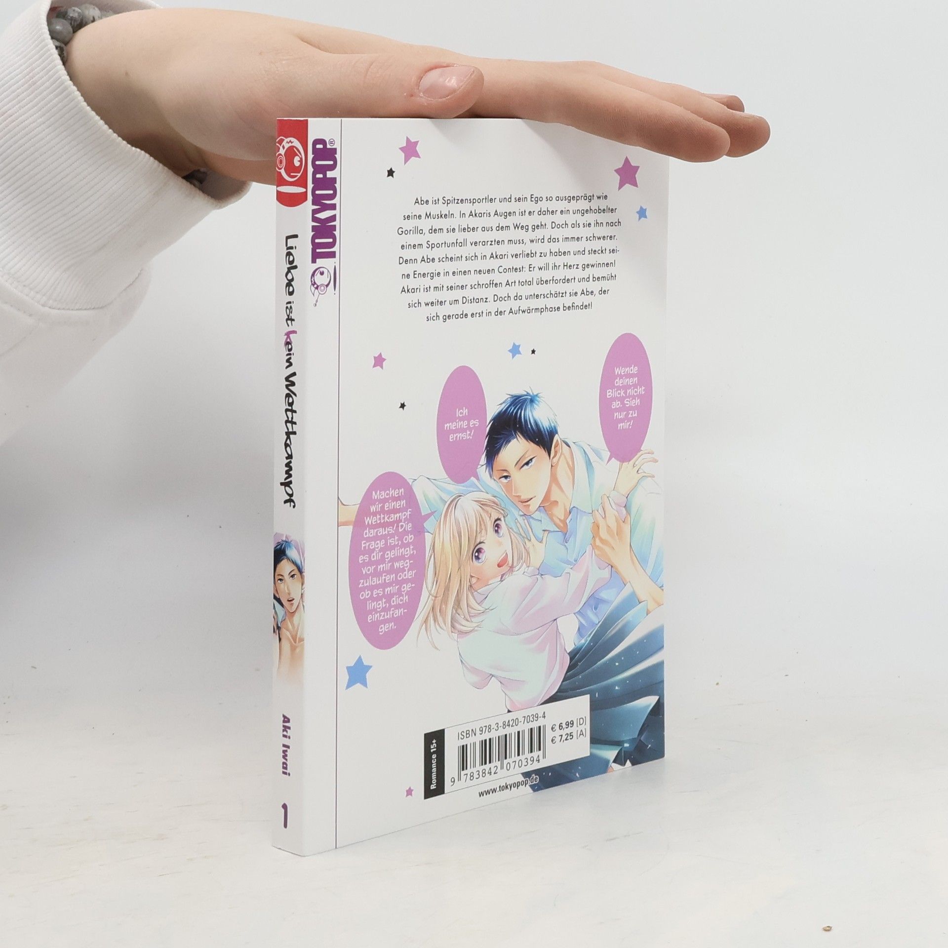 Abe ist der Spitzensportler der Schule und sein Ego so ausgeprägt wie seine Muskeln. In Akaris Augen ist er jedoch ein ungehobelter Gorilla, weshalb sie ihm aus dem Weg geht. Viel lieber unternimmt sie etwas mit ihrem Kindheitsfreund Takuto, von dessen sanfter Art sie nicht genug bekommen kann. Als sich Abe bei einem Basketballspiel ihretwegen verletzt, sieht sich Akari gezwungen, den Muskelprotz zu verarzten. Allerdings hat sie nicht damit gerechnet, dass für Sport-Ass Abe bereits ein neuer Contest begonnen hat, bei dem er unbedingt siegen will: Er möchte Akaris Herz gewinnen! Doch kann er wirklich bei ihr punkten? Der erste Band von „Liebe ist (k)ein Wettkampf/“ enthält eine süße ShoCo in der Erstauflage!