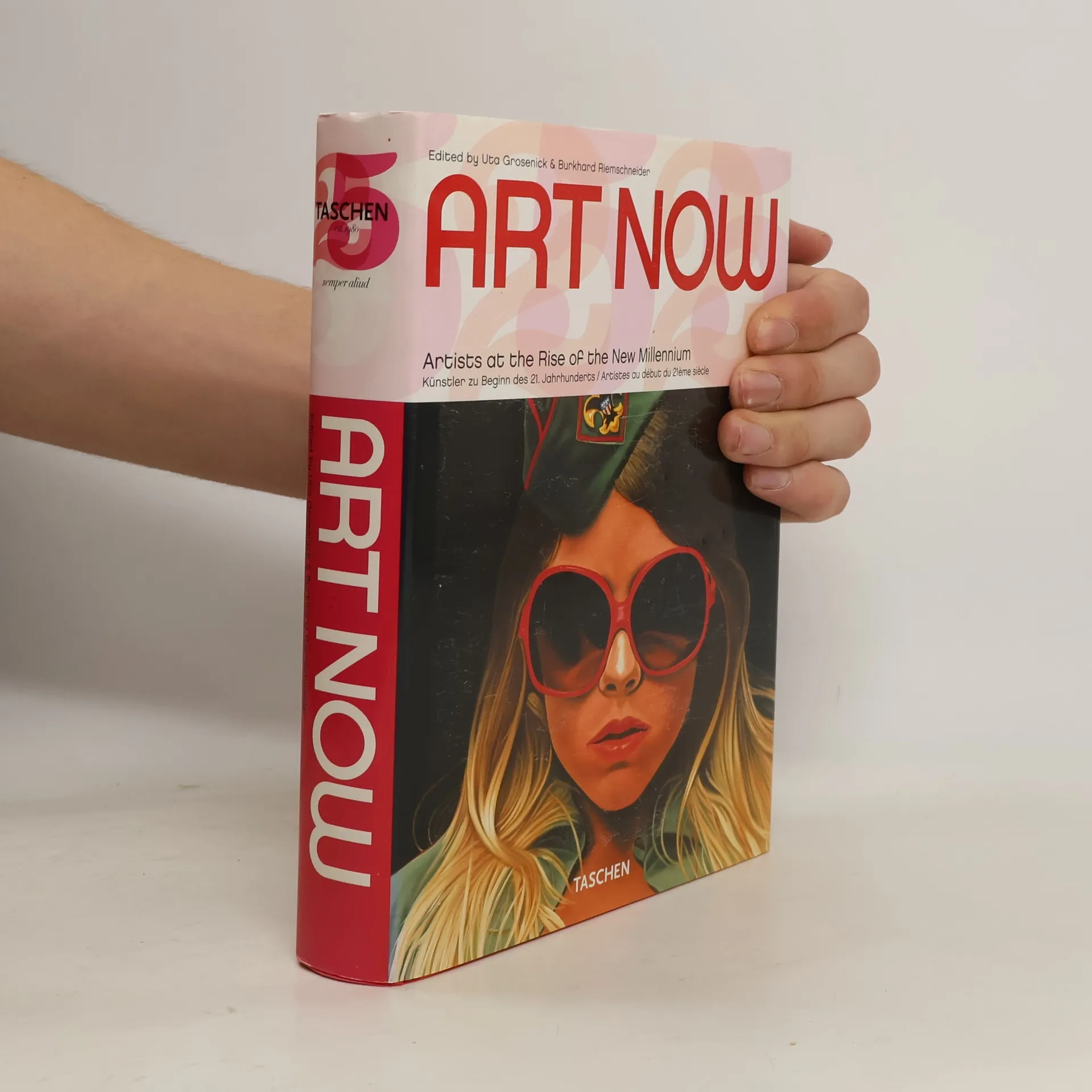 Contemporary art in a nutshell (TASCHEN's 25th anniversary special edition) This Art Now 25th anniversary special edition brings together recent work and biographical information for over 80 of today's most influential artists, forming a broad and vibrant spectrum of the work that has shaped the art world in recent years. Featured artists include: Matthew Barney, Maurizio Cattelan, John Currin, Tacita Dean, Thomas Demand, Rineke Dijkstra, Douglas Gordon, Andreas Gursky, Thomas Hirschhorn, Damien Hirst, Mike Kelley, Martin Kippenberger, Jeff Koons, Sharon Lockhart, Won Ju Lim, Paul McCarthy, Mariko Mori, Sarah Morris, Vik Muniz, Takashi Murakami, Shirin Neshat, Albert Oehlen, Chris Ofili, Gabriel Orozco, Jorge Pardo, Elizabeth Peyton, Thomas Ruff, Cindy Sherman, Thomas Struth, Wolfgang Tillmans, Rirkrit Tiravanija, Luc Tuymans, Jeff Wall, and Andrea Zittel.