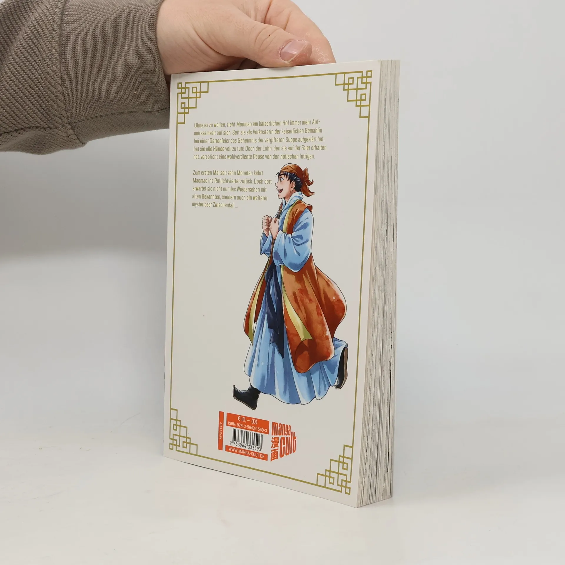 Ohne es zu wollen, zieht Maomao am Kaiserlichen kaiserlichen Hof immer mehr Aufmerksamkeit auf sich. Seit sie als Vorkosterin der kaiserlichen Gemahlin bei einer Gartenfeier das Geheimnis des vergifteten Kelchs aufgeklärt hat, hat sie alle Hände voll zu tun! Doch der Lohn, den sie auf der Feier erhalten hat, verspricht eine wohlverdiente Pause von den höfischen Intrigen. Zum ersten Mal seit zehn Monaten kehrt Maomao ins Rotlichtviertel zurück. Doch dort erwartet sie nicht nur das Wiedersehen mit ihrem Vater, sondern auch ein weiterer mysteriöser Zwischenfall …