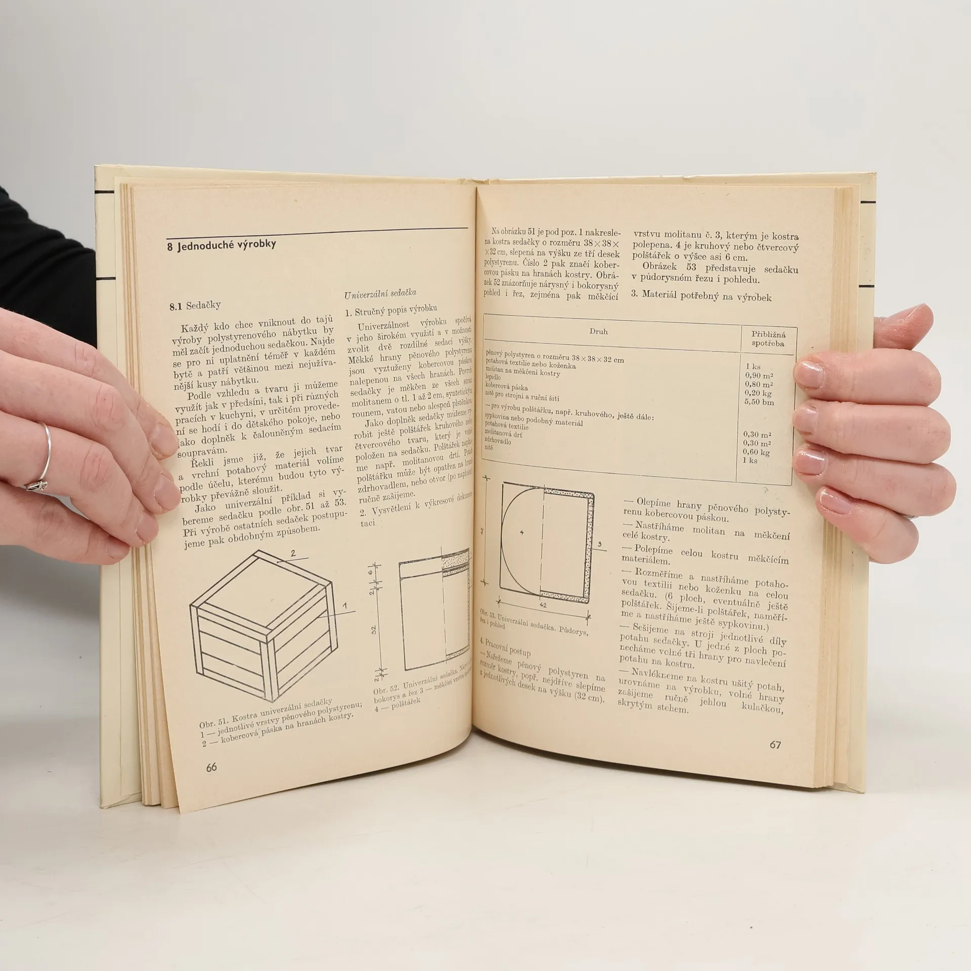 Příručka seznamuje s nejčastěji používanými plastickými hmotami pro výrobu nábytku, s údržbou a opravami tohoto nábytku. Informuje o vybavení domácí dílny, o potřebném nářadí a nástrojích a popisuje základní pracovní operace. Uvádí také plánky a návody, jak ve vlastní dílně zhotovit jednoduché předměty i složitější čalouněné sedací soupravy, lůžkový a rozkládací nábytek.