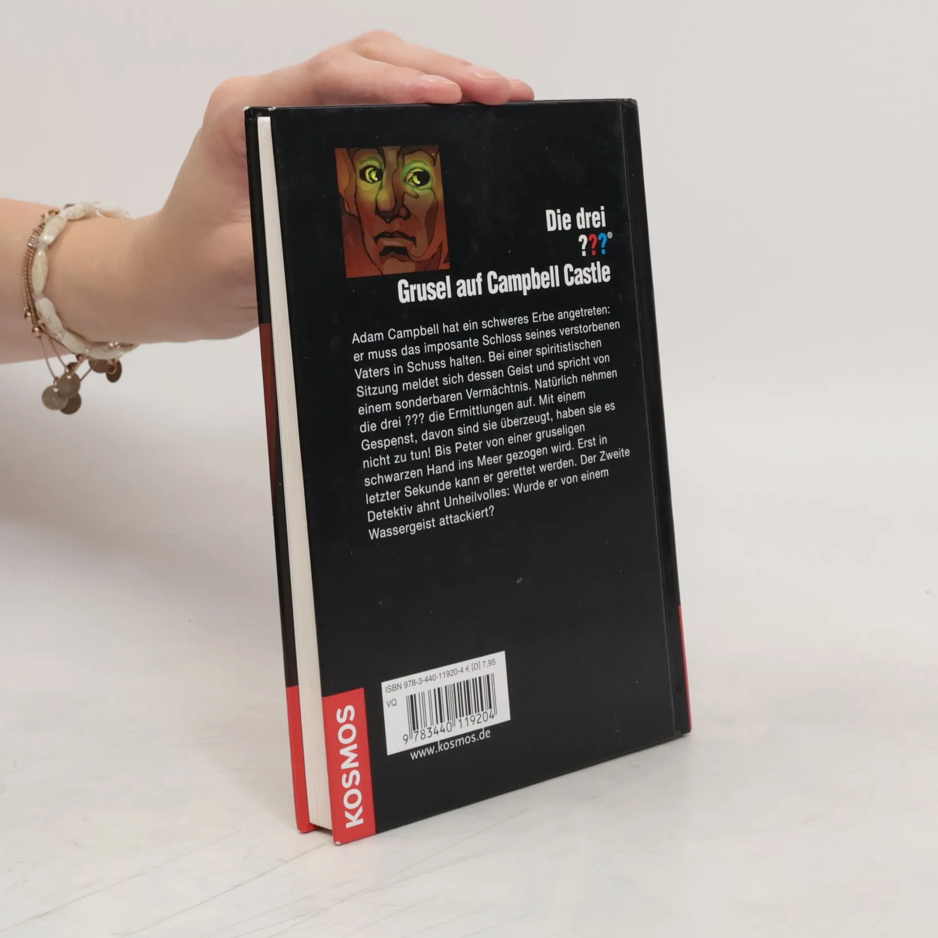 Adam Campbell hat ein schweres Erbe angetreten: er muss das imposante Schloss seines vor fünfzehn Jahren verstorbenen Vaters in Schuss halten. Bei einer spiritistischen Sitzung meldet sich der Geist von Samuel Campbell und spricht von einem sonderbaren Vermächtnis. Natürlich nehmen die drei ??? die Ermittlungen auf. Mit einem Gespenst, davon sind sie überzeugt, haben sie es nicht zu tun. Bis Peter von einer gruseligen schwarzen Hand ins Meer gezogen wird. Erst in letzter Sekunde kann er gerettet werden. Der Zweite Detektiv ahnt Unheilvolles: Wurde er von einem Wassergeist attackiert?
