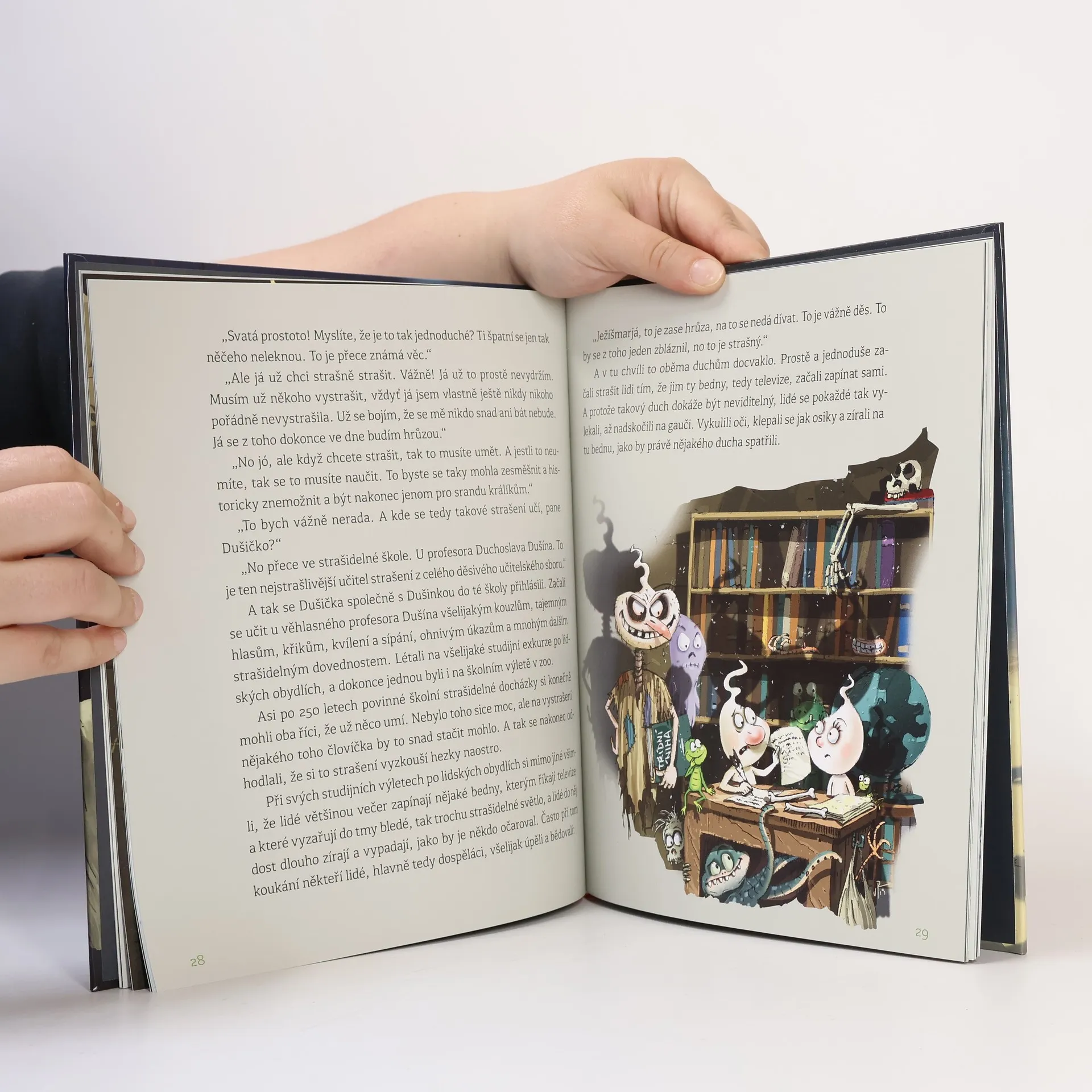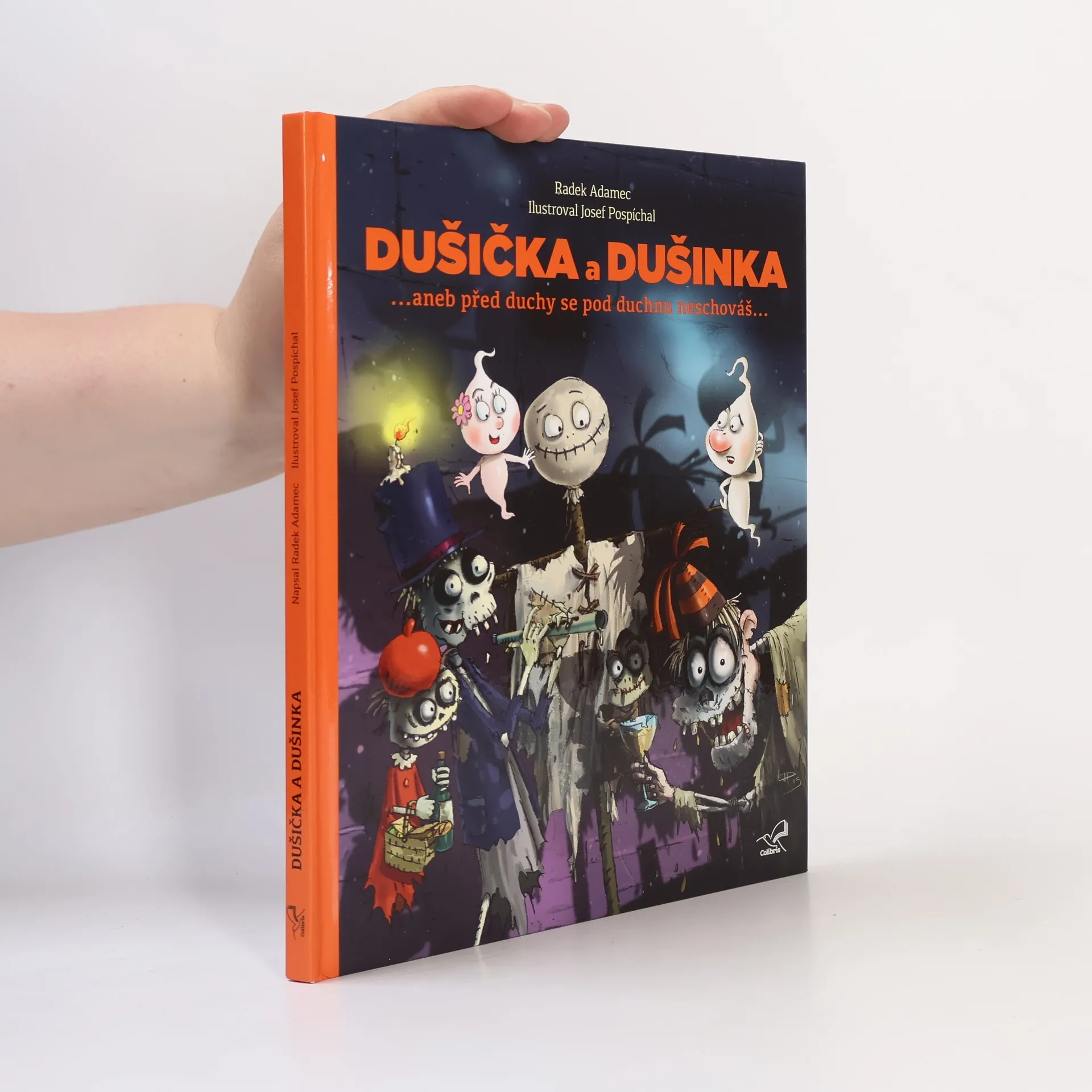 Dušička a Dušinka: před duchy se pod duchnu neschováš. Kniha autora Radka Adamce Dušička a Dušinka volně navazuje na knihu Bubákov a Strašákov. Prožijete s ní veselé a milé příběhy dvou hašteřivých a všetečných duchů, kteří se rozhodli strašit lidi. Jenže tak trochu pozapomněli, že strašení není věc jednoduchá a že žádný učený z nebe nespadl. A to je potom o zábavu postaráno. Děti se budou s těmito hodnými duchy těšit každý večer do postýlky. Ono totiž před duchy se stejně pod žádnou duchnu neschováte. Knihu bohatě a strašidelně ilustroval Josef Pospíchal.