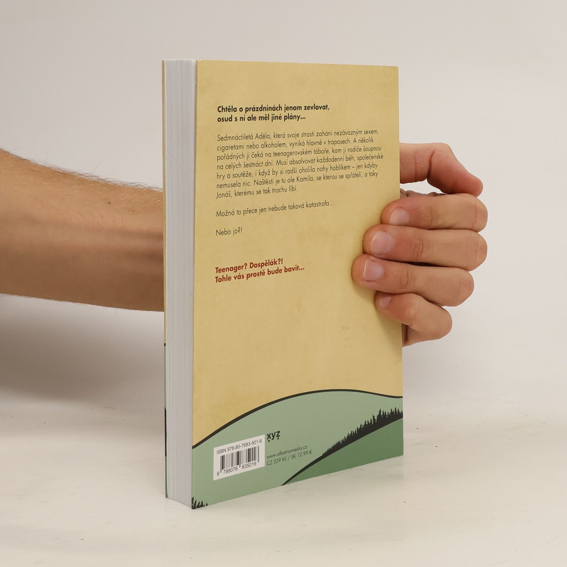 Chtěla o prázdninách jenom zevlovat, osud s ní měl ale jiné plány. Sedmnáctiletá Adéla, která svoje strasti a osamělost zahání nezávazným sexem, cigaretami nebo alkoholem, vyniká hlavně v trapasech. A několik pořádných ji čeká na teenagerovském táboře, kam ji rodiče šoupnou na celých šestnáct dní. Musí tam absolvovat každodenní běh, společenské hry nebo se účastnit různých soutěží, během nichž by si radši holila nohy hoblíkem. Naštěstí je tu ale Kamila, se kterou se spřátelí, a taky Jonáš, který se jí tak trochu líbí. Možná to přece jen nebude taková katastrofa. Nebo jo?