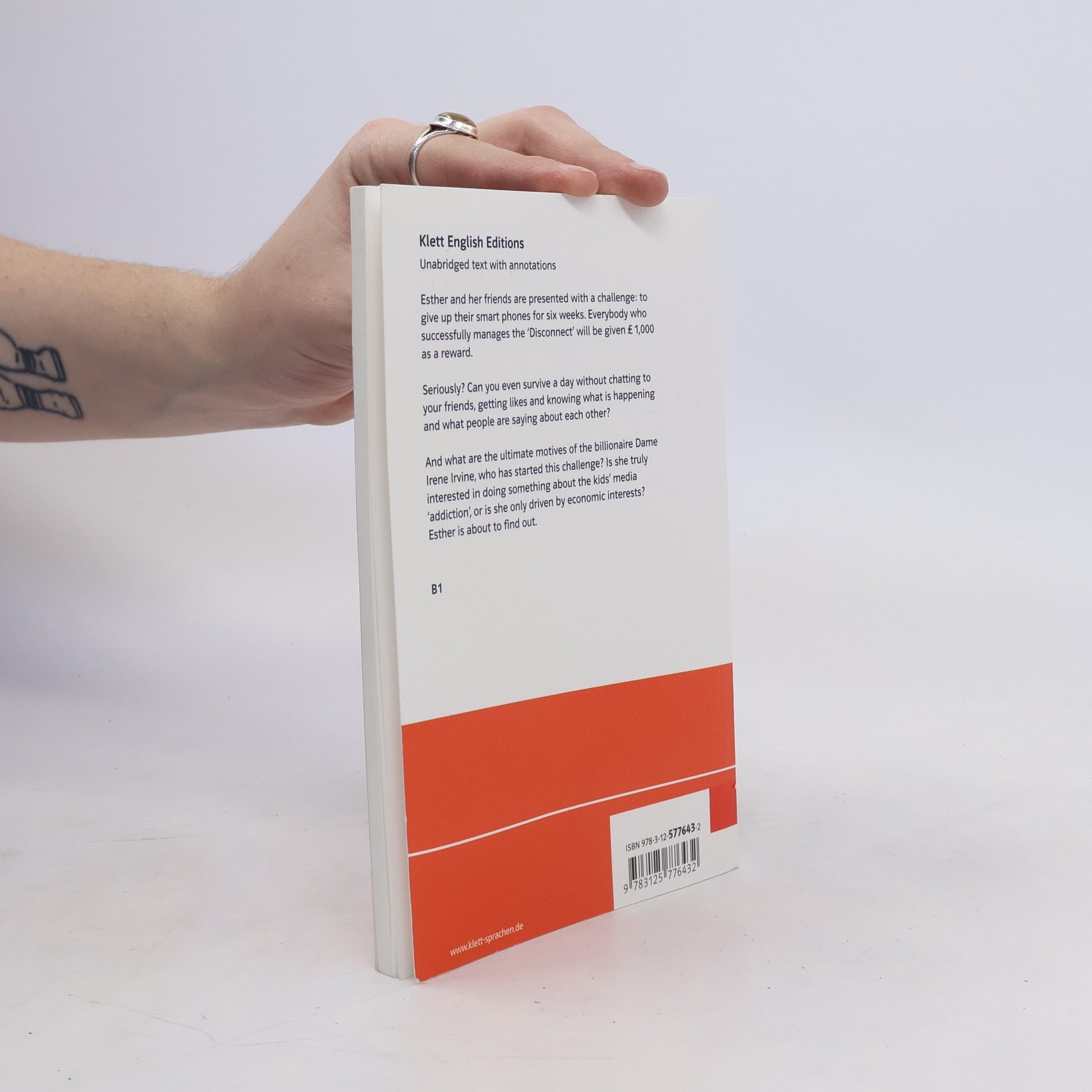 Esther und ihre Freunde stehen vor einer Herausforderung: Sie müssen ihre Smartphones für sechs Wochen aufgeben. Jeder, der den „Disconnect“ erfolgreich bewältigt, erhält als Belohnung 1.000 Pfund. Im Ernst? Kann man auch nur einen Tag überstehen, ohne mit seinen Freunden zu chatten und zu wissen, was passiert und was die Leute übereinander sagen? Und was sind die Motive der Milliardärin Irene Irvine, die diese Herausforderung begonnen hat? Ist sie wirklich daran interessiert, etwas gegen die „Sucht“ der Kindermedien zu unternehmen, oder wird sie nur von wirtschaftlichen Interessen angetrieben? Esther ist dabei, das herauszufinden.