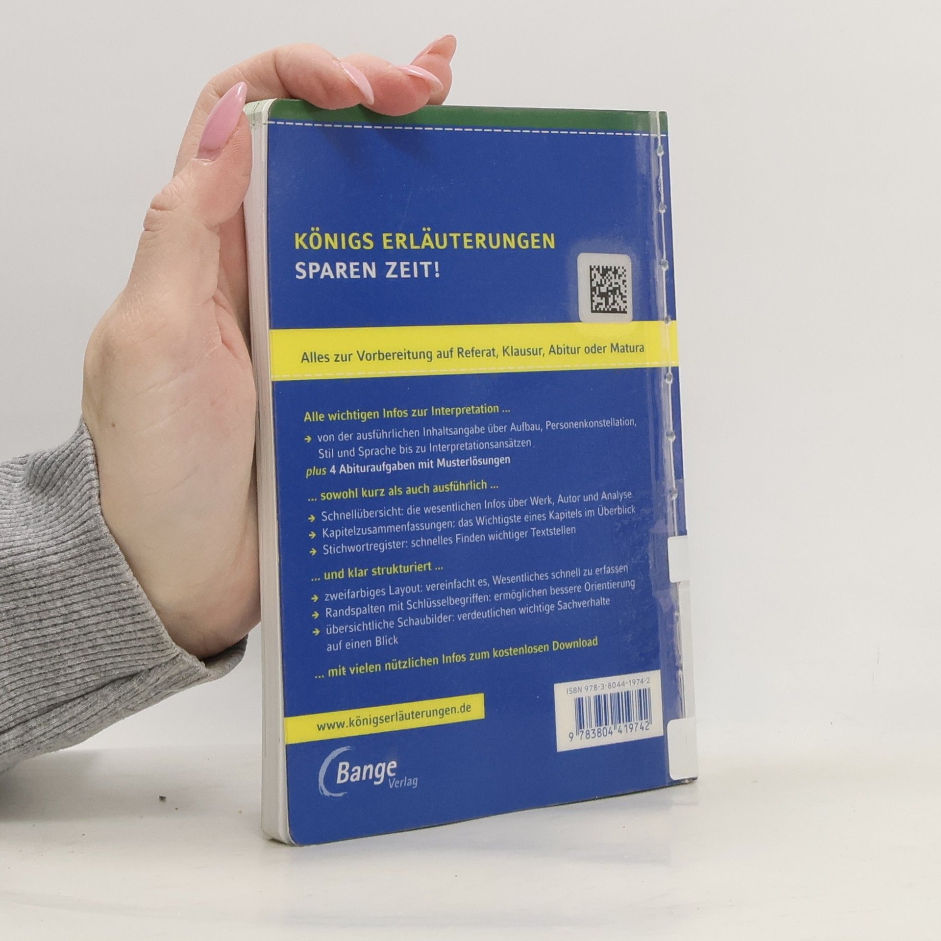 Königs Erläuterungen – Textyse und Interpretation mit ausführlicher Inhaltsangabe und AbituraufgabenIn einem Band bieten dir die neuen Königs Erläuterungenalles , was du zur Vorbereitung aufReferat, Klausur, Abitur oder Matura benötigst.Dasspart Zeit bei der Vorbereitung!Alle wichtigen Infos zur Interpretation... - von der ausführlichen Inhaltsangabe über Aufbau, Personenkonstellation, Stil und Sprache bis zu Interpretationsansätzen - plus 4 Abituraufgaben mit Musterlösungen und 2 weitere zum kostenlosen Download... sowohl kurz als auch ausführlich ... - Die Schnellübersicht ft alle wesentlichen Infos zu Werk und Autor und yse zusammen. - Die Kapitelzusammenfungen zeigen dir das Wichtigste eines Kapitels im Überblick – ideal auch zum Wiederholen. - Das Stichwortregister ermöglicht dir schnelles Finden wichtiger Textstellen.... und klar strukturiert ... - Ein zweifarbiges Layout hilft dir Wesentliches einfacher und schneller zu erfen. - Die Randspalte mit Schlüsselbegriffen ermöglichen dir eine bessere Orientierung.- Klar strukturierte Schaubilder verdeutlichen dir wichtige Sachverhalte auf einen Blick.... mit vielen zusätzlichen Infos zum kostenlosen Download.